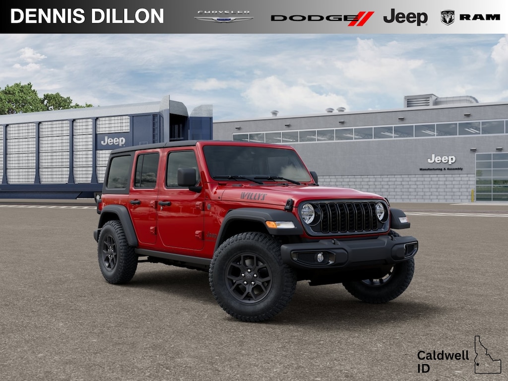 12.3" Touchscreen Display, 2-Door Passive Entry, Front Door Locks, 4-Wheel Disc Brakes, 4-Wheel Drive Swing Gate Decal, 4G LTE Wi-Fi Hot Spot, 7 and 4 Pin Wiring Harness, 8 Speakers, ABS brakes, Advanced Brake Assist, Air Conditioning, Air Conditioning with Auto Temp Control, Air Filtering, AM/FM radio: SiriusXM with 360L, Apple CarPlay, Apple CarPlay/Android Auto, Automatic Headlamps, Aux Battery, Auxiliary Switches, Black 3-Piece Hard Top, Black Grille with Gloss Black Rings, Brake assist, Class II Receiver Hitch, Cluster 7.0" TFT Color Display, Compass, Connectivity - US/Canada, Convenience Group, Conventional Differential Front Axle, Corning Gorilla Glass, Dana M210 Wide HD Tube Front Axle, Dana M220 Wide Rear Axle, Daytime Running Lamps LED Accents, Deep Tint Sunscreen Windows, Delay-off headlights, Driver door bin, Driver vanity mirror, Dual front impact airbags, Dual front side impact airbags, Electronic Locker Rear Axle, Electronic Stability Control, Emergency/Assistance Call, Enhanced Adaptive Cruise Control, For More Info, Call 800-643-2112, Freedom Panel Storage Bag, Front anti-roll bar, Front Bucket Seats, Front Center Armrest w/Storage, Front fog lights, Front LED Fog Lamps, Front reading lights, Full Speed Forward Collision Warning Plus, Google Android Auto, Heated Front Seats, Heated Steering Wheel, Illuminated entry, Injection Molded Black Rear Bumper, Integrated Center Stack Radio, Integrated roll-over protection, LED Premium Reflector Headlamps, Low tire pressure warning, Manufacture Statement of Origin, Mold in Color Bumper with Gloss Black, Molded in Color Rubicon Highline Flare, MOPAR All-Weather Floor Mats, No Soft Top, Non-Lock Fuel Cap Without Discriminator, Normal Duty Suspension, Occupant sensing airbag, Off-Road Plus Mode, Outside temperature display, Overhead airbag, Panic alarm, ParkView Rear Back-Up Camera, Passenger door bin, Passenger vanity mirror, Power Heated Mirrors, Power steering, Power windows, Premium Wrapped Steering Wheel, Quick Order Package 22W Willys, Radio data system, Radio: Uconnect 5 with 12.3" Display, Rear anti-roll bar, Rear reading lights, Rear Window Defroster, Rear Window Wiper/Washer, Remote keyless entry, Security Alarm, SiriusXM Radio Service, SiriusXM with 360L, Speed control, Split folding rear seat, Steering wheel mounted audio controls, Stop-Start Dual Battery System, Sun Visors with Illuminated Vanity Mirrors, Tachometer, Telescoping steering wheel, Tilt steering wheel, Traction control, Trip computer, Universal Garage Door Opener, Variably intermittent wipers, Wheels: 17" x 7.5" Black Steel Styled, Wheels: 17" x 7.5" Painted Black, Willys Hood Decal, Willys Suspension. CARS COST LESS IN CALDWELL!!! Recent Arrival! Price includes: $1000 - 2026 National Retail Bonus Cash . Exp. 04/30/2026