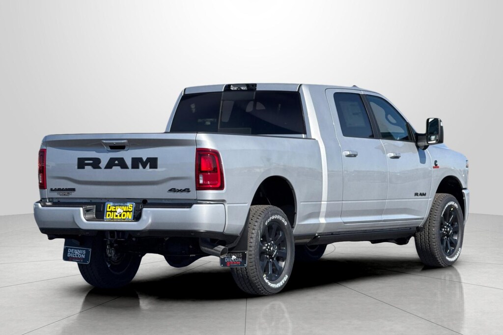 #1 Seat Foam Cushion, 10 Speakers, 115V Auxiliary Rear Power Outlet, 14.4" Touchscreen Display, 17 Speaker Harman/Kardon Premium Sound, 2 Way Rear Headrest Seat, 3.42 Axle Ratio, 4 Way Front Headrests, 4-Wheel Disc Brakes, 4G LTE Wi-Fi Hot Spot, 5th Wheel/Gooseneck Towing Prep Group, ABS brakes, Active Lane Management System, Adaptive Steering System, Air Conditioning, Alexa Built-in, Alloy wheels, AM/FM radio: SiriusXM with 360L, Anti-Spin Differential Rear Axle, Apple CarPlay, Apple CarPlay/Android Auto, Auto Adjust in Reverse Exterior Mirrors, Auto Dim Exterior Mirror, Auto High Beam Headlamp Control, Auto Power-Folding Mirrors, Auto-Dimming Exterior Passenger Mirror, Auto-dimming Rear-View mirror, Automatic temperature control, Black Exterior Truck Badging, Black Wheel Center Hub, Body Color Grille Surround, Brake assist, Bucket Seats, Bumpers: body-color, Center Stop Lamp with Cargo View Camera, Chrome Exterior Mirrors, Clearance Lamps, Compass, Connected Travel and Traffic Services, Connectivity - US/Canada, Dash Pass Thru Wire Circuits, Delay-off headlights, Disassociated Touchscreen Display, Driver door bin, Driver vanity mirror, Drowsy Driver Detection, Dual Alternators Rated At 480 Amps, Dual front impact airbags, Dual front side impact airbags, Dual Wireless Charging Pad, Electronic Stability Control, Emergency Vehicle Alert System (EVAS), Engine Block Heater, Exterior Mirrors Courtesy Lamps, Exterior Mirrors with Heating Element, Exterior Mirrors with Memory, Exterior Mirrors with Supplemental Signals, Foam Bottle Insert (door Trim Panel), For Details, Visit DriveUconnect.com, For More Info, Call 800-643-2112, Forward and Reverse Utility Lights, Front anti-roll bar, Front Center Armrest w/Storage, Front dual zone A/C, Front fog lights, Front License Plate Bracket, Front reading lights, Front Seat Back Map Pockets, Full Length Upgraded Floor Console, Fully automatic headlights, Garage door transmitter, Global Telematics Box Module, Gloss Black Grille Billets/Accents, Google Android Auto, GPS Antenna Input, GPS Navigation, HD Radio, Heated door mirrors, Heated Front Seats, Heated front seats, Heated Steering Wheel, Heated steering wheel, High Back Seats, Illuminated entry, Instrument Panel Mounted Auxiliary Switches, Integrated Voice Command with Bluetooth, Laramie Level 2 Plus Equipment Group, Leather Trim 40/20/40 Bench Seat, Leather Trimmed Bucket Seats, LED Bed Lighting, Low tire pressure warning, Manufacturer's Statement of Origin, Mirror Running Lights, MOPAR Deployable Bed Step, MOPAR Spray in Bedliner, MOPAR Trailer Camera Wiring with No Camera, Navigation System, Night Edition, Occupant sensing airbag, Off-Road Information Pages, on Board Power System - 2.4KW, Outside temperature display, Overhead airbag, Overhead console, Panic alarm, ParkView Rear Back-Up Camera, Passenger door bin, Passenger vanity mirror, Power 2-Way Driver Lumbar Adjust, Power 2-Way Passenger Lumbar Adjust, Power Adjust 8-Way Driver Seat, Power Adjust 8-Way Front Passenger Seat, Power Adjust Mirrors, Power Adjustable Convex Aux Mirrors, Power Adjustable Pedals with Memory, Power Deployable Running Boards, Power door mirrors, Power driver seat, Power Heated Fold Telescope Mirrors w/Memory, Power passenger seat, Power steering, Power Sunroof, Power Telescoping Mirrors, Power windows, Quick Order Package 24H Laramie, Radio data system, Radio: Uconnect 5 Nav with 14.4" Display, Radio: Uconnect 5 Navigation with 12.0" Display, Rain Sensitive Windshield Wipers, Rear 60/40 Folding Seat, Rear anti-roll bar, Rear reading lights, Rear seat center armrest, Rear step bumper, Rear window defroster, Remote keyless entry, Remote Tailgate Release, Security system, Selectable Tire Fill Alert, SiriusXM Radio Service, SiriusXM with 360L, Speed control, Split folding rear seat, Sport Performance Hood, Steering whe Price includes: $1000 - 2026 National Bonus Cash . Exp. 04/30/2