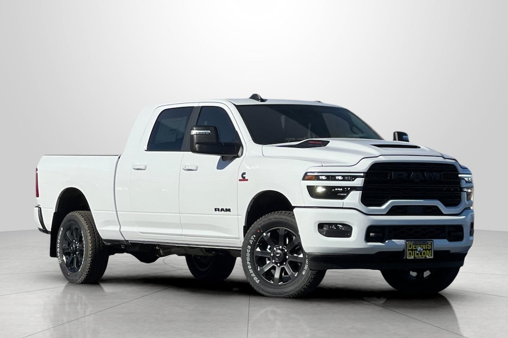 #1 Seat Foam Cushion, 10 Speakers, 115V Auxiliary Rear Power Outlet, 2 Way Rear Headrest Seat, 3.42 Axle Ratio, 4 Way Front Headrests, 4-Wheel Disc Brakes, 4G LTE Wi-Fi Hot Spot, 5th Wheel/Gooseneck Towing Prep Group, ABS brakes, Active Lane Management System, Adaptive Steering System, Air Conditioning, Alexa Built-In, Alloy wheels, AM/FM radio: SiriusXM with 360L, Anti-Spin Differential Rear Axle, Apple CarPlay, Apple CarPlay/Android Auto, Auto Adjust In Reverse Exterior Mirrors, Auto Dim Exterior Mirror, Auto High Beam Headlamp Control, Auto Power-Folding Mirrors, Auto-Dimming Exterior Passenger Mirror, Auto-dimming Rear-View mirror, Automatic temperature control, Black Exterior Truck Badging, Black Wheel Center Hub, Body Color Grille Surround, Brake assist, Bucket Seats, Bumpers: body-color, Center Stop Lamp w/Cargo View Camera, Chrome Exterior Mirrors, Compass, Connected Travel & Traffic Services, Connectivity - US/Canada, Dash Pass Thru Wire Circuits, Delay-off headlights, Disassociated Touchscreen Display, Driver door bin, Driver vanity mirror, Drowsy Driver Detection, Dual front impact airbags, Dual front side impact airbags, Dual Wireless Charging Pad, Electronic Stability Control, Emergency Vehicle Alert System (EVAS), Engine Block Heater, Exterior Mirrors Courtesy Lamps, Exterior Mirrors w/Heating Element, Exterior Mirrors w/Memory, Exterior Mirrors w/Supplemental Signals, Foam Bottle Insert (Door Trim Panel), For Details, Visit DriveUconnect.com, For More Info, Call 800-643-2112, Forward & Reverse Utility Lights, Front anti-roll bar, Front Center Armrest w/Storage, Front dual zone A/C, Front fog lights, Front License Plate Bracket, Front reading lights, Front Seat Back Map Pockets, Full Length Upgraded Floor Console, Fully automatic headlights, Garage door transmitter, Global Telematics Box Module (TBM), Gloss Black Grille Billets/Accents, Google Android Auto, GPS Antenna Input, GPS Navigation, HD Radio, Heated door mirrors, Heated Front Seats, Heated front seats, Heated Second Row Seats, Heated Steering Wheel, Heated steering wheel, High Back Seats, I/P Mounted Auxiliary Switches, Illuminated entry, Integrated Voice Command w/Bluetooth, Laramie Level 1 Plus Equipment Group, Leather Trim 40/20/40 Bench Seat, Leather Trimmed Bucket Seats, LED Bed Lighting, Low tire pressure warning, Manufacturer's Statement of Origin, Mirror Running Lights, MOPAR Deployable Bed Step, MOPAR Spray In Bedliner, Navigation System, Night Edition, Occupant sensing airbag, Off-Road Information Pages, Outside temperature display, Overhead airbag, Overhead console, Panic alarm, ParkView Rear Back-Up Camera, Passenger door bin, Passenger vanity mirror, Power 2-Way Driver Lumbar Adjust, Power 2-Way Passenger Lumbar Adjust, Power Adjust 8-Way Driver Seat, Power Adjust 8-Way Front Passenger Seat, Power Adjust Mirrors, Power Adjustable Convex Aux Mirrors, Power Adjustable Pedals w/Memory, Power door mirrors, Power driver seat, Power Heated Fold Telescope Mirrors w/Memory, Power passenger seat, Power steering, Power Sunroof, Power Telescoping Mirrors, Power windows, Quick Order Package 24H Laramie, Radio data system, Radio: Uconnect 5 Nav w/12.0" Display, Rain Sensitive Windshield Wipers, Rear 60/40 Folding Seat, Rear anti-roll bar, Rear reading lights, Rear seat center armrest, Rear step bumper, Rear window defroster, Remote keyless entry, Remote Tailgate Release, Security system, Selectable Tire Fill Alert, SiriusXM Radio Service, SiriusXM w/360L, Speed control, Split folding rear seat, Sport Performance Hood, Steering wheel mounted audio controls, Surround View Camera System, Tachometer, Tilt steering wheel, Towing Technology Group, Traction control, Traffic Sign Recognition, Trailer Reverse Guidance, Trailer Tire Pressure Monitoring System, Trailer Tow Pages, Trip computer, Turn signal indicat Price includes: $1000 - 2026 National Bonus Cash . Exp. 12/01/2