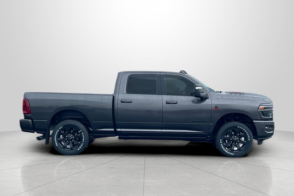 #1 Seat Foam Cushion, 10 Speakers, 115V Auxiliary Rear Power Outlet, 14.4" Touchscreen Display, 17 Speaker Harman/Kardon Premium Sound, 2 Way Rear Headrest Seat, 2nd Row in Floor Storage Bins, 4 Way Front Headrests, 4-Wheel Disc Brakes, 4G LTE Wi-Fi Hot Spot, 5th Wheel/Gooseneck Towing Prep Group, ABS brakes, Active Lane Management System, Adaptive Steering System, Air Conditioning, Alexa Built-in, Alloy wheels, AM/FM radio: SiriusXM with 360L, Apple CarPlay, Apple CarPlay/Android Auto, Auto Adjust in Reverse Exterior Mirrors, Auto Dimming Exterior Passenger Mirror, Auto High Beam Headlamp Control, Auto Level Rear Air Suspension, Auto Power-Folding Mirrors, Auto-Dimming Exterior Mirrors, Auto-dimming Rear-View mirror, Automatic temperature control, Black Exterior Mirrors, Black Exterior Truck Badging, Black Wheel Center Hub, Body Color Grille Surround, Brake assist, Bucket Seats, Bumpers: body-color, Center Stop Lamp with Cargo View Camera, Chrome Exterior Mirrors, Clearance Lamps, Compass, Connected Travel and Traffic Services, Connectivity - US/Canada, Delay-off headlights, Delete Deployable Bed Step, Digital 3.0 Rear View Auto Dimming Mirror, Disassociated Touchscreen Display, Driver door bin, Driver vanity mirror, Drowsy Driver Detection, Dual Alternators Rated At 400 Amps, Dual Alternators Rated At 480 Amps, Dual front impact airbags, Dual front side impact airbags, Dual Wireless Charging Pad, Electronic Stability Control, Emergency Vehicle Alert System (EVAS), Exterior Mirrors Courtesy Lamps, Exterior Mirrors with Heating Element, Exterior Mirrors with Memory, Exterior Mirrors with Supplemental Signals, Foam Bottle Insert (door Trim Panel), Folding Flat Load Floor Storage, For Details Visit DriveUconnect.com, For More Info, Call 800-643-2112, Forward and Reverse Utility Lights, Front anti-roll bar, Front Center Armrest w/Storage, Front dual zone A/C, Front fog lights, Front License Plate Bracket, Front reading lights, Front Seat Back Map Pockets, Full Length Upgraded Floor Console, Fully automatic headlights, Garage door transmitter, Global Telematics Box Module, Gloss Black Grille Billets/Accents, Google Android Auto, GPS Antenna Input, GPS Navigation, HD Radio, Heated door mirrors, Heated Front Seats, Heated front seats, Heated Steering Wheel, Heated steering wheel, High Back Seats, Illuminated entry, Integrated Voice Command with Bluetooth, Laramie Level 2 Plus Equipment Group, Leather Trim 40/20/40 Bench Seat, Leather Trimmed Bucket Seats, LED Bed Lighting, Low tire pressure warning, Manufacturer's Statement of Origin, Mirror Running Lights, MOPAR Deployable Bed Step, MOPAR Front and Rear Rubber Floor Mats, MOPAR Spray in Bedliner, MOPAR Trailer Camera Wiring with No Camera, Navigation System, Night Edition, Occupant sensing airbag, Off-Road Information Pages, on Board Power System - 2.4KW, Outside temperature display, Overhead airbag, Overhead console, Panic alarm, ParkView Rear Back-Up Camera, Passenger door bin, Passenger vanity mirror, Power 2-Way Driver Lumbar Adjust, Power 2-Way Passenger Lumbar Adjust, Power Adjust 8-Way Driver Seat, Power Adjust 8-Way Front Passenger Seat, Power Adjust Mirrors, Power Adjustable Pedals with Memory, Power Deployable Running Boards, Power door mirrors, Power driver seat, Power Heat Fold Memory Telescopic Mirrors, Power passenger seat, Power steering, Power Sunroof, Power Telescoping Mirrors, Power windows, Power-Adjustable Convex Aux Mirrors, Quick Order Package 24H Laramie, Radio data system, Radio: Uconnect 5 Nav with 14.4" Display, Radio: Uconnect 5 Navigation with 12.0" Display, Radio/Driver Seat/Mirrors/Pedals Memory, Rain Sensitive Windshield Wipers, Rear 60/40 Folding Seat, Rear reading lights, Rear seat center armrest, Rear step bumper, Rear window defroster, Remote keyless entry, Remote Tailgate Release, Se Price includes: $1000 - 2026 National Bonus Cash . Exp. 04/30/2