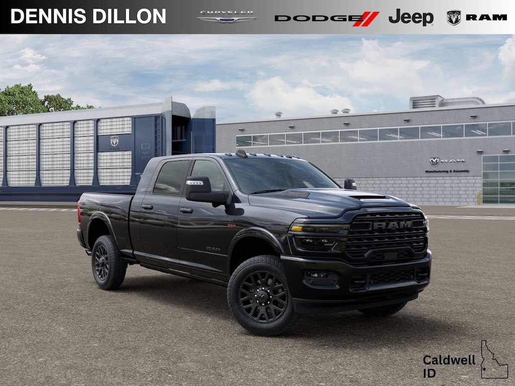 17 Speakers, 3.42 Axle Ratio, 4-Wheel Disc Brakes, 5th Wheel/Gooseneck Towing Prep Group, ABS brakes, Active Lane Management System, Adaptive Steering System, Adjustable pedals, Air Conditioning, Alloy wheels, AM/FM radio: SiriusXM with 360L, Apple CarPlay/Android Auto, Audio memory, Auto High-beam Headlights, Auto Level Rear Air Suspension, Auto-dimming door mirrors, Auto-dimming Rear-View mirror, Automatic temperature control, Black Exterior Truck Badging, Black Grille Limited, Black Wheel Center Hub, Body Color Grille Surround, Bodyside moldings, Brake assist, Bumpers: body-color, Center Stop Lamp with Cargo View Camera, Clearance Lamps, Cold Weather Group, Compass, Delay-off headlights, Digital 3.0 Rear View Auto Dim Mirror, Digital Rearview Mirror, Driver door bin, Driver vanity mirror, Drowsy Driver Detection, Dual Alternators Rated At 480 Amps, Dual front impact airbags, Dual front side impact airbags, Electronic Stability Control, Engine Block Heater, Front anti-roll bar, Front Bucket Seats, Front Center Armrest w/Storage, Front dual zone A/C, Front fog lights, Front License Plate Bracket, Front reading lights, Fully automatic headlights, Garage door transmitter, Genuine wood console insert, Genuine wood dashboard insert, Genuine wood door panel insert, harman/kardon® Speakers, Heated door mirrors, Heated front seats, Heated rear seats, Heated steering wheel, Illuminated entry, Leather steering wheel, LED Bed Lighting, Limited Level 1 Equipment Group, Low tire pressure warning, Manufacturer's Statement of Origin, Memory seat, MOPAR Spray in Bedliner, MOPAR Trailer Camera Wiring with No Camera, MOPAR Winter Front Grille Cover, Navigation System, Night Edition, Occupant sensing airbag, on Board Power System - 2.4KW, Outside temperature display, Overhead airbag, Overhead console, Panic alarm, ParkView Rear Back-Up Camera, Passenger door bin, Passenger vanity mirror, Pedal memory, Pickup Box, Power Deployable Running Boards, Power door mirrors, Power driver seat, Power passenger seat, Power steering, Power Sunroof, Power windows, Quick Order Package 24M Limited, Radio data system, Radio: Uconnect 5 Nav with 14.4" Display, Rain sensing wipers, Rear reading lights, Rear seat center armrest, Rear step bumper, Rear window defroster, Remote keyless entry, Security system, Speed control, Split folding rear seat, Sport Performance Hood, Steering wheel mounted audio controls, Surround View Camera System, Tachometer, Tilt steering wheel, Tow Technology Plus Group, Traction control, Traffic Sign Recognition, Trailer Reverse Guidance, Trailer Reverse Steering Control, Trailer Tire Pressure Monitoring System, Trip computer, Turn signal indicator mirrors, Ultra Premium Leather Seats, Variably intermittent wipers, Vendor Painted Cargo Box, Vendor Painted Cargo Box Tracking, Ventilated front seats, Voltmeter, Wheels: 20" x 8" Diamond Cut Aluminum, Wheels: 20" x 8" Night Edition Black Aluminum. CARS COST LESS IN CALDWELL!!! Recent Arrival! Price includes: $1000 - 2026 National Bonus Cash . Exp. 03/31/2026
