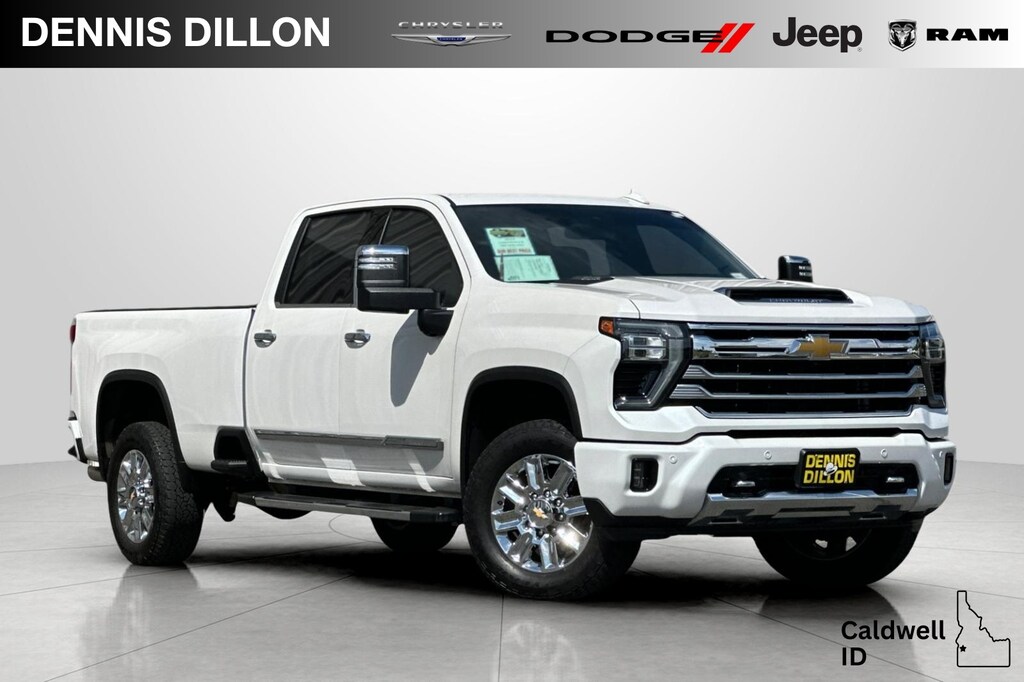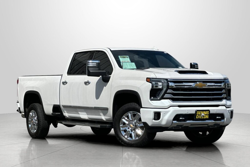 Clean CARFAX. Iridescent Pearl Tricoat 2024 Chevrolet Silverado 3500HD High Country 4D Crew Cab 4WD 10-Speed Automatic 6.6L V8 10-Speed Automatic, 4WD, Jet Black Leather, 10-Way Power Driver Seat Adjuster w/Lumbar, 10-Way Power Passenger Seat Adjuster w/Lumbar, 120-Volt Bed Mounted Power Outlet, 120-Volt Interior Power Outlet, 170 Amp Alternator, 3.73 Rear Axle Ratio, 4-Wheel Disc Brakes, 6" Rectangular Chromed Tubular Assist Steps, 7 Speakers, ABS brakes, Air Conditioning, Alloy wheels, AM/FM radio: SiriusXM with 360L, Apple CarPlay/Android Auto, Auto High-beam Headlights, Auto-dimming door mirrors, Auto-Dimming Inside Rear-View Mirror, Auto-dimming Rear-View mirror, Automatic temperature control, Bed View Camera w/2 Trailer Camera Provisions, Bluetooth® For Phone, Bodyside moldings, Bose Premium 7-Speaker Sound System, Brake assist, Bumpers: body-color, Chevrolet Connected Access Capable, Chevytec Spray-On Black Bedliner, Chrome Door Handles, Chrome Mirror Caps, Color-Keyed Carpeting Floor Covering, Compass, Compass Located In Instrument Cluster, Deep-Tinted Glass, Delay-off headlights, Driver door bin, Driver Memory, Driver vanity mirror, Dual front impact airbags, Dual front side impact airbags, Durabed Pickup Bed, Electric Rear-Window Defogger, Electronic Stability Control, Floor-Mounted Center Console, Front anti-roll bar, Front Bucket Seats, Front Carpeted Floor Mats, Front Center Armrest, Front Chrome Recovery Hooks, Front dual zone A/C, Front fog lights, Front LED Fog Lamps, Front License Plate Kit, Front Rain-Sensing Wipers, Front reading lights, Front wheel independent suspension, Fully automatic headlights, Garage door transmitter, Genuine wood console insert, Genuine wood dashboard insert, Genuine wood door panel insert, Heated 2nd Row Outboard Seats, Heated door mirrors, Heated Driver & Front Outboard Passenger Seats, Heated front seats, Heated rear seats, Heated Steering Wheel, Heated steering wheel, Heavy-Duty 80 Amp-Hr Battery, Hitch Guidance w/Hitch View, Illuminated entry, In-Vehicle Trailering App System, Keyless Open & Start, LED Cargo Area Lighting, Low tire pressure warning, Manual Tilt-Wheel/Telescoping Steering Column, Memory seat, Occupant sensing airbag, OnStar & Chevrolet Connected Services Capable, Outside temperature display, Overhead airbag, Overhead console, Panic alarm, Passenger door bin, Passenger vanity mirror, Perforated Leather Seating Surfaces, Polished Exhaust Tip, Power Door Locks, Power door mirrors, Power driver seat, Power Front Windows w/Driver Express Up/Down, Power Front Windows w/Passenger Express Up/Down, Power passenger seat, Power Rear Windows w/Express Down, Power Sliding Rear Window w/Defogger, Power steering, Power Tailgate, Power windows, Preferred Equipment Group 3LZ, Premium audio system: Chevrolet Infotainment 3 Premium, Push Button Start, Radio: Chevrolet Infotainment 3 Premium System, Rain sensing wipers, Rear Carpeted Floor Mats, Rear Cross Traffic Alert, Rear reading lights, Rear seat center armrest, Rear step bumper, Rear window defroster, Remote keyless entry, Remote Vehicle Starter System, Security system, SiriusXM w/360L, Speed control, Speed-sensing steering, Split folding rear seat, Standard Tailgate, Steering Wheel Audio Controls, Steering wheel mounted audio controls, Steering Wheel Mounted Electronic Cruise Control, Suspension Package, Tachometer, Telescoping steering wheel, Tilt steering wheel, Traction control, Trailer Camera Provisions, Trailer Side Blind Zone Alert, Trip computer, Turn signal indicator mirrors, Ultrasonic Front & Rear Park Assist, Unauthorized Entry Theft-Deterrent System, Universal Home Remote, Up-Level Rear Seat w/Storage Package, Variably intermittent wipers, Ventilated Driver & Front Passenger Seats, Ventilated front seats, Voltmeter, Wi-Fi Hotspot Capable, Wireless Charging, Wrapped Steering Wheel, 10-Speed Automatic, 4WD, Jet Black Leather.