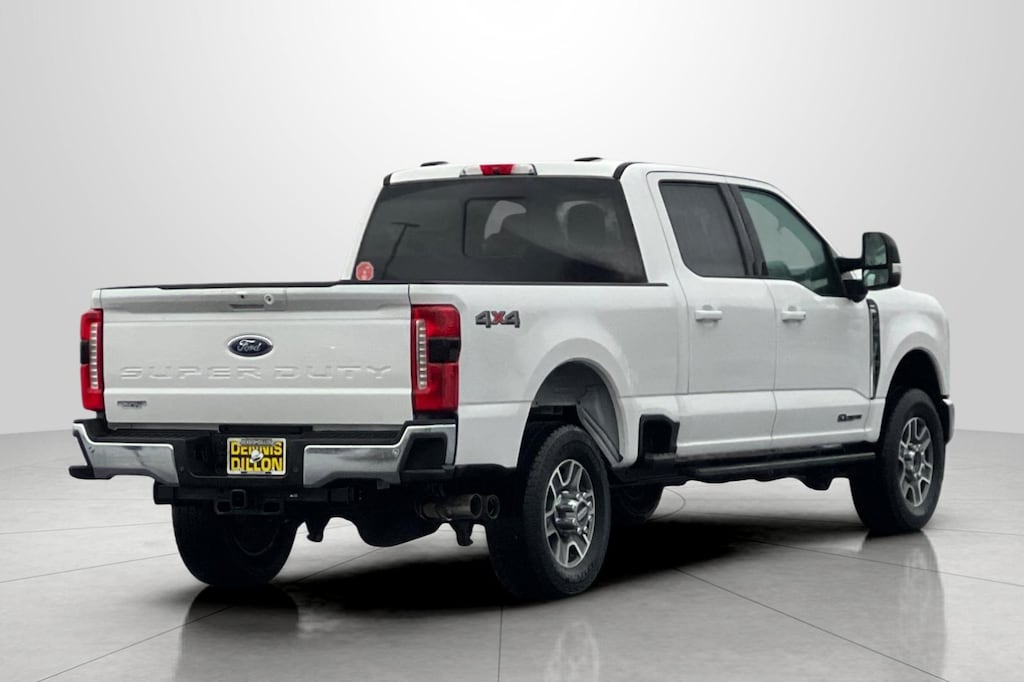Clean CARFAX. CARFAX One-Owner. Star White Metallic Tri-Coat 2024 Ford F-350SD Lariat 4D Crew Cab 4WD 10-Speed Automatic Power Stroke 6.7L V8 DI 32V OHV Turbodiesel 4WD, 190 Amp Alternator, 4-Wheel Disc Brakes, 8 Speakers, ABS brakes, Adjustable pedals, Air Conditioning, All-Weather Floor Mats, Alloy wheels, AM/FM radio: SiriusXM with 360L, Auto High-beam Headlights, Auto tilt-away steering wheel, Auto-dimming Rear-View mirror, Automatic temperature control, Brake assist, Bumpers: chrome, Compass, Delay-off headlights, Driver door bin, Driver vanity mirror, Dual 68 AH/65 AGM Batteries, Dual front impact airbags, Dual front side impact airbags, Electronic Stability Control, Emergency communication system: SYNC 4 911 Assist, Exterior Parking Camera Rear, Flow-Through Console, Front anti-roll bar, Front Bucket Seats, Front Center Armrest, Front dual zone A/C, Front fog lights, Front Leather-Trimmed 40/Console/40 Seats, Front reading lights, Fully automatic headlights, Garage door transmitter, Heated door mirrors, Heated front seats, Heated rear seats, Heated steering wheel, Illuminated entry, Leather steering wheel, Low tire pressure warning, Memory seat, Navigation system: Connected Navigation (includes complimentary 1-year trial), Order Code 618A, Outside temperature display, Overhead airbag, Overhead console, Panic alarm, Passenger door bin, Passenger vanity mirror, Pedal memory, Power door mirrors, Power driver seat, Power passenger seat, Power steering, Power windows, Radio: B&O Sound System by Bang & Olufsen, Rain sensing wipers, Rear reading lights, Rear seat center armrest, Rear step bumper, Rear window defroster, Remote keyless entry, Security system, SiriusXM Radio w/360L, Speed control, Split folding rear seat, Steering wheel memory, Steering wheel mounted audio controls, SYNC 4 w/Enhanced Voice Recognition, Tachometer, Telescoping steering wheel, Tilt steering wheel, Traction control, Trip computer, Turn signal indicator mirrors, Variably intermittent wipers, Ventilated front seats, Wheels: 18" Bright Machined & Carbonized Gray Alum, 4WD.