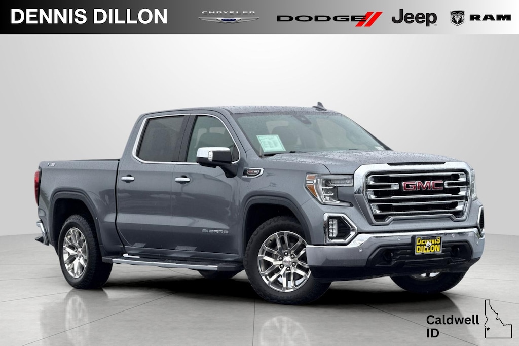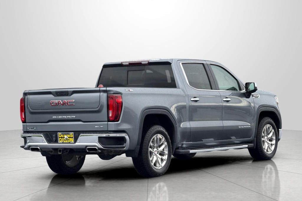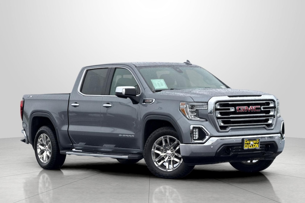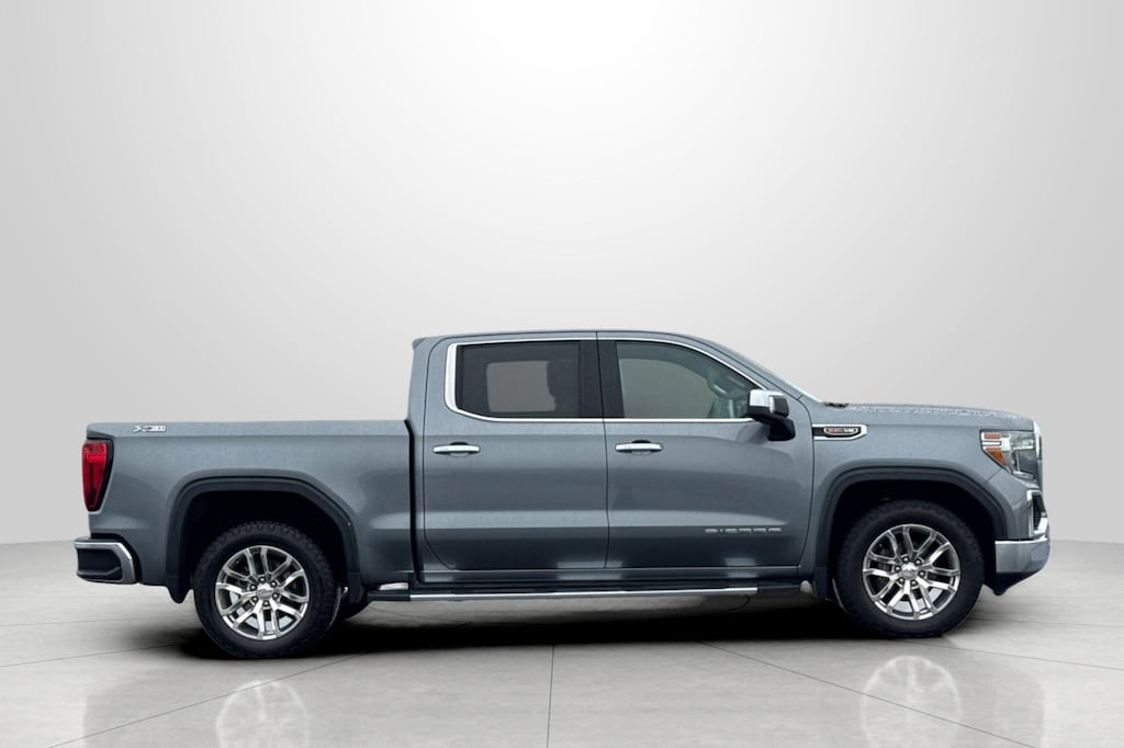 Satin Steel Metallic 2019 GMC Sierra 1500 SLT 4D Crew Cab 4WD 10-Speed Automatic EcoTec3 6.2L V8 10-Speed Automatic, 4WD, Black Leather, 10-Way Power Driver Seat Adjuster w/Lumbar, 10-Way Power Passenger Seat Adjuster w/Lumbar, 12-Volt Rear Auxiliary Power Outlet, 120-Volt Bed Mounted Power Outlet, 120-Volt Instrument Panel Power Outlet, 170 Amp Alternator, 2 USB Ports, 2 USB Ports (1st Row), 20" x 9" Polished Aluminum Wheels, 3.23 Rear Axle Ratio, 4-Wheel Disc Brakes, 6 Speakers, 6-Speaker Audio System Feature, ABS brakes, Air Conditioning, Alloy wheels, AM/FM radio: SiriusXM, Apple CarPlay/Android Auto, Auto-dimming door mirrors, Auto-dimming Rear-View mirror, Automatic temperature control, Auxiliary External Transmission Oil Cooler, Brake assist, Bumpers: chrome, Chrome Assist Steps, Chrome Grille, Color-Keyed Carpeting Floor Covering, Compass, Deep-Tinted Glass, Delay-off headlights, Driver Alert Package I, Driver Alert Package II, Driver door bin, Driver Memory, Driver vanity mirror, Dual Exhaust w/Premium Tips, Dual front impact airbags, Dual front side impact airbags, Electric Rear-Window Defogger, Electrical Lock Control Steering Column, Electronic Stability Control, Floor Mounted Console, Following Distance Indicator, Forward Collision Alert, Front 40/20/40 Split-Bench Seat, Front anti-roll bar, Front Bucket Seats, Front Center Armrest w/Storage, Front dual zone A/C, Front fog lights, Front Frame-Mounted Black Recovery Hooks, Front License Plate Kit, Front Pedestrian Braking, Front reading lights, Front wheel independent suspension, Fully automatic headlights, GMC 4G LTE, GMC Connected Access, HD Radio, Heated 2nd Row Outboard Seats, Heated door mirrors, Heated Driver & Front Passenger Seating, Heated front seats, Heated steering wheel, Heavy Duty Suspension, Heavy-Duty Rear Locking Differential, High-Capacity Air Filter, Hill Descent Control, Hitch Guidance, Hitch Guidance w/Hitch View, Illuminated entry, In-Vehicle Trailering App, Integrated Trailer Brake Controller, IntelliBeam Automatic High Beam On/Off, Keyless Open & Start, Lane Change Alert w/Side Blind Zone Alert, Lane Keep Assist w/Lane Departure Warning, LED Cargo Area Lighting, Low Speed Forward Automatic Braking, Low tire pressure warning, Manual Tilt-Wheel & Telescoping Steering Column, Memory seat, Occupant sensing airbag, Off-Road Suspension, OnStar & GMC Connected Services Capable, Outside temperature display, Overhead airbag, Overhead console, Panic alarm, Passenger door bin, Passenger vanity mirror, Perforated Leather-Appointed Seat Trim, Perimeter Lighting, Power Door Locks, Power door mirrors, Power driver seat, Power Front Passenger Windows w/Express Up/Down, Power Front Windows w/Driver Express Up/Down, Power passenger seat, Power Rear Windows w/Express Down, Power Sliding Rear Window w/Rear Defogger, Power steering, Power Sunroof, Power windows, Preferred Equipment Group 4SA, Premium audio system: GMC Infotainment System, Premium Bose 7-Speaker Sound System, Radio data system, Radio: Premium GMC Infotainment Sys w/Multi-Touch, Radio: Premium GMC Infotainment Sys w/Navigation, Rear Cross Traffic Alert, Rear Dual USB Charging-Only Ports, Rear reading lights, Rear seat center armrest, Rear step bumper, Rear Wheelhouse Liners, Rear window defroster, Remote keyless entry, Remote Vehicle Starter System, Safety Alert Seat, Security system, SiriusXM Radio, SLT Convenience Package, SLT Preferred Package, SLT Premium Plus Package, Speed control, Speed-sensing steering, Split folding rear seat, Spray-On Pickup Bed Liner w/GMC Logo, Steering Wheel Audio Controls, Steering wheel mounted audio controls, Tachometer, Telescoping steering wheel, Theft Deterrent System (Unauthorized Entry), Tilt steering wheel, Traction control, Trailer Tire Pressure Monitor System, Trailering Package, Trip computer, Ultrasonic Front & Rear Park Assist, Universal Home Remote, Variably intermittent wipers, Ventilated Driver & Front Passenger Seats, Voltmeter, Wheels: 18" x 8.5" 6-