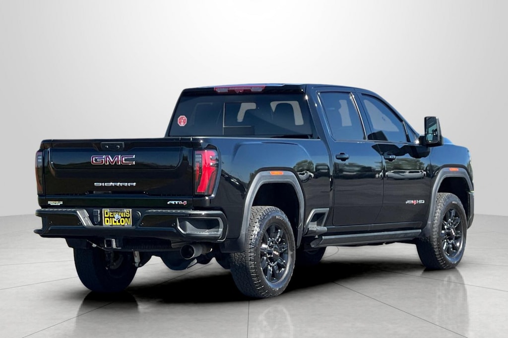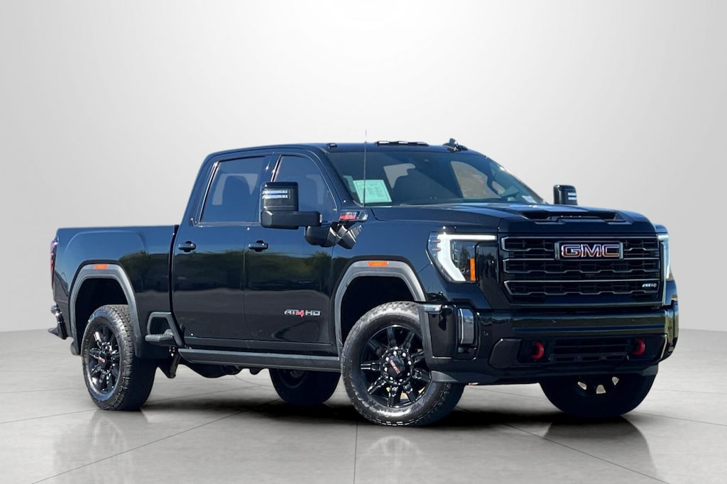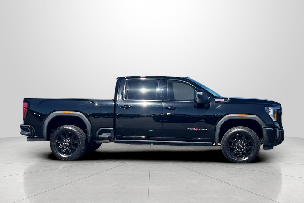 Clean CARFAX. CARFAX One-Owner. Onyx Black 2024 GMC Sierra 3500HD AT4 4D Crew Cab 4WD 10-Speed Automatic Duramax 6.6L V8 Turbodiesel 10-Speed Automatic, 4WD, Jet Black With Kalahari Accents Leather, 10-Way Power Driver Seat Adjuster w/Lumbar, 10-Way Power Passenger Seat Adjuster w/Lumbar, 120-Volt Bed Mounted Power Outlet, 120-Volt Instrument Panel Power Outlet, 2 Charge-Only Rear USB Ports, 2 Charge/Data USB Ports Inside Center Console, 2 USB Ports, 2-Speed Active Transfer Case, 220 Amp Alternator, 4-Wheel Disc Brakes, 7 Speakers, ABS brakes, Adaptive Cruise Control, Air Conditioning, Alloy wheels, AM/FM radio: SiriusXM with 360L, Apple CarPlay/Android Auto, AT4 Preferred Package, AT4 Premium Plus Package, Auto High-beam Headlights, Auto-dimming door mirrors, Auto-Dimming Inside Rearview Mirror w/Camera, Auto-dimming Rear-View mirror, Automatic Emergency Braking, Automatic temperature control, Bed View Camera w/2 Trailer Camera Provisions, Black Power-Retractable Assist Steps, Bose Premium 7-Speaker Sound System, Brake assist, Buckle to Drive, Bumpers: body-color, Compass, Deep-Tinted Glass, Delay-off headlights, Driver door bin, Driver Memory, Driver vanity mirror, Dual front impact airbags, Dual front side impact airbags, Electric Rear-Window Defogger, Electronic Stability Control, Engine Block Heater, Exhaust Brake, Floor-Mounted Center Console, Following Distance Indicator, Forward Collision Alert, Front anti-roll bar, Front Bucket Seats, Front Center Armrest, Front dual zone A/C, Front fog lights, Front License Plate Kit, Front Pedestrian Braking, Front Rain-Sensing Wipers, Front reading lights, Front wheel independent suspension, Fully automatic headlights, Gloss Black Header & Grille Insert Bars, GMC Premium 13.4" Diagonal Information Display, Gooseneck/5th Wheel Prep Package, HD Surround Vision, Heated 2nd Row Outboard Seats, Heated door mirrors, Heated Driver & Front Outboard Passenger Seats, Heated front seats, Heated rear seats, Heated steering wheel, Heavy-Duty 80 Amp-Hr Battery, Hill Descent Control, Hitch Guidance w/Hitch View, Illuminated entry, Integrated Trailer Brake Controller, IntelliBeam Automatic High Beam On/Off, Keyless Open & Start, Lane Departure Warning System, LED Cargo Area Lighting, LED Smoked Amber Roof Marker Lamps, Low tire pressure warning, Manual Tilt-Wheel/Telescoping Steering Column, Memory seat, Multicolor 15" Diagonal Head-Up Display, Occupant sensing airbag, Off-Road High Clearance Step (LPO), Off-Road Suspension, Outside temperature display, Overhead airbag, Overhead console, Panic alarm, Passenger door bin, Passenger vanity mirror, Perforated Leather-Appointed Front Seat Trim, Pickup Bed, Power door mirrors, Power driver seat, Power Front Windows w/Passenger Express Up/Down, Power passenger seat, Power Sliding Rear Window w/Defogger, Power steering, Power Sunroof, Power windows, Preferred Equipment Group 4SB, Prem Front Floor Liners w/Removable Carpet Insert, Prem Rear Floor Liners w/Removable Carpet Insert, Premium audio system: Premium GMC Infotainment System, Push Button Start, Radio: AM/FM w/Premium GMC Infotainment System, Rain sensing wipers, Rear Cross Traffic Alert, Rear reading lights, Rear seat center armrest, Rear step bumper, Rear Wheelhouse Liners, Rear window defroster, Remote keyless entry, Remote Vehicle Starter System, Safety Alert Seat, Security system, SiriusXM w/360L, Speed control, Speed-sensing steering, Split folding rear seat, Spray-On Pickup Bedliner w/AT4 Logo, Steering Wheel Audio Controls, Steering wheel mounted audio controls, Tachometer, Technology Package, Telescoping steering wheel, Tilt steering wheel, Traction control, Trailer Camera Provisions, Trailer Side Blind Zone Alert, Trailer Tire Pressure Monitor Sensors, Trip computer, Turn signal indicator mirrors, Unauthorized Entry Theft-Deterrent System, Universal Home Remote, Variably intermittent wipers, Ventilated Driver & Front Passenger Seats, Ventilated front seats, Voltmeter, Wheels: 20" High Glos