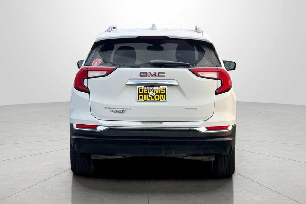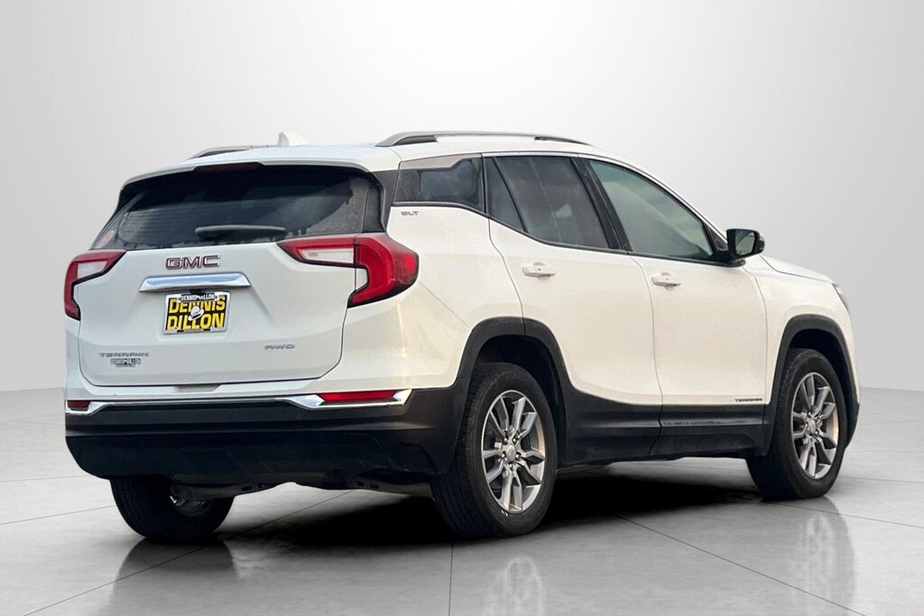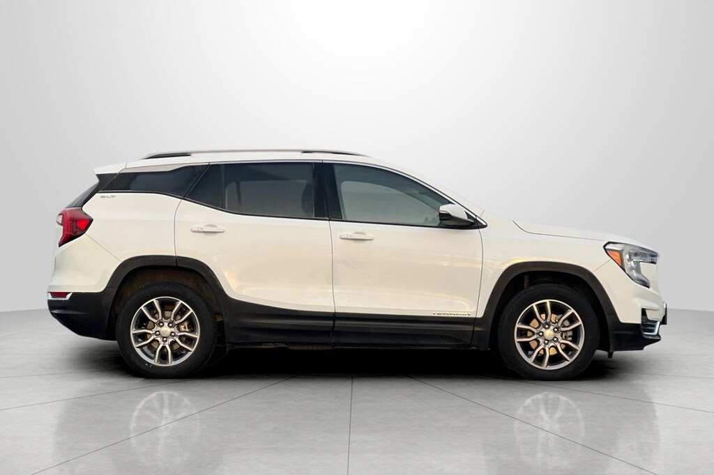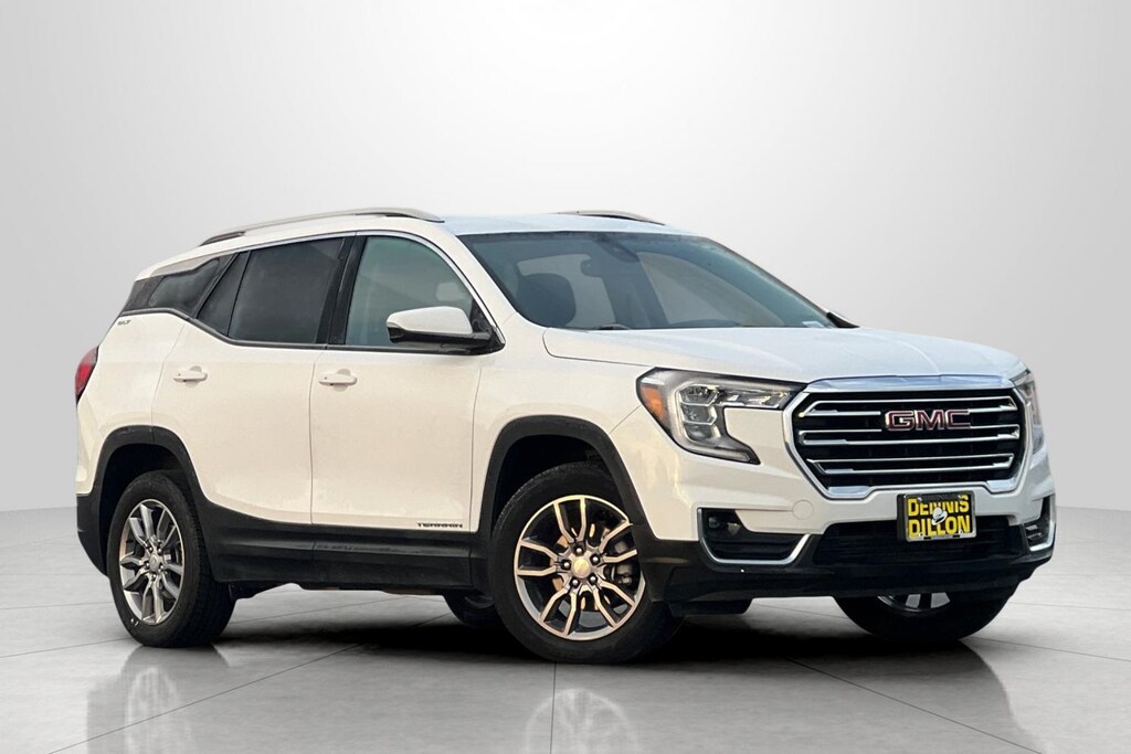 CARFAX One-Owner. Summit White 2024 GMC Terrain SLT 4D Sport Utility AWD 9-Speed Automatic 1.5L DOHC AWD, 2 USB Data Ports, 2 USB Data Ports w/SD Card Reader, 3.47 Final Drive Axle Ratio, 4-Wheel Disc Brakes, 6 Speakers, 6-Speaker Audio System Feature, 6-Way Power Front Passenger Seat, 8-Way Power Driver Seat Adjuster, ABS brakes, Air Conditioning, Alloy wheels, AM/FM radio: SiriusXM, Auto High-beam Headlights, Auto-dimming Rear-View mirror, Automatic temperature control, Bluetooth® For Phone, Brake assist, Bumpers: body-color, Compass, Delay-off headlights, Deleted 3 Years of Remote Access, Driver & Front Passenger Heated Seats, Driver door bin, Driver vanity mirror, Dual front impact airbags, Dual front side impact airbags, Electronic Stability Control, Emergency communication system: OnStar and GMC connected services capable, Four wheel independent suspension, Front anti-roll bar, Front Bucket Seats, Front Center Armrest, Front dual zone A/C, Front fog lights, Front Passenger 2-Way Power Lumbar, Front reading lights, Fully automatic headlights, Garage door transmitter, Heated door mirrors, Heated front seats, Heated steering wheel, Illuminated entry, License Plate Front Mounting Package, Low tire pressure warning, Memory seat, Occupant sensing airbag, Outside temperature display, Overhead airbag, Overhead console, Panic alarm, Passenger door bin, Passenger vanity mirror, Perforated Leather-Appointed Seat Trim, Power door mirrors, Power Driver Lumbar Control, Power driver seat, Power Liftgate, Power passenger seat, Power steering, Power windows, Preferred Equipment Group 4SA, Radio data system, Radio: GMC Infotainment Audio System w/8" Display, Rear anti-roll bar, Rear seat center armrest, Rear window defroster, Rear window wiper, Remote keyless entry, Roof rack: rails only, Security system, SiriusXM, Speed control, Speed-sensing steering, Split folding rear seat, Spoiler, Steering wheel mounted audio controls, Tachometer, Telescoping steering wheel, Tilt steering wheel, Traction control, Trip computer, Turn signal indicator mirrors, Variably intermittent wipers, Wheels: 18" x 7" Silver Painted Aluminum, Wireless Apple CarPlay/Wireless Android Auto, AWD.