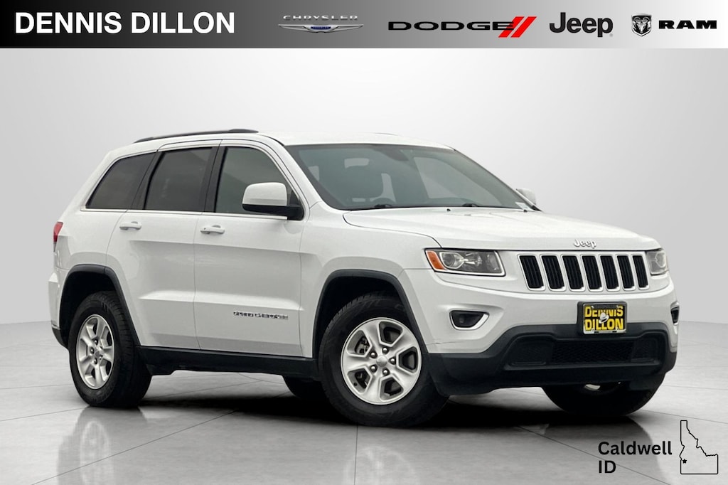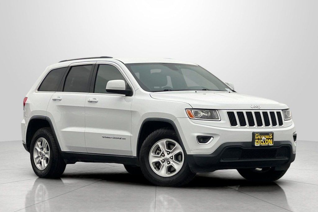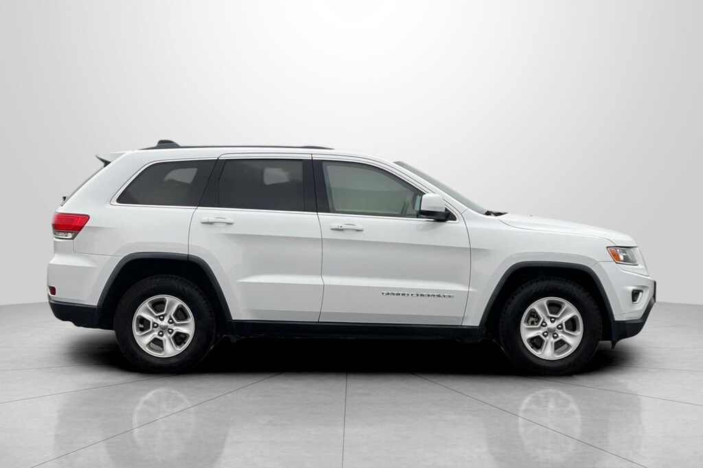 Clean CARFAX. Bright White Clearcoat 2016 Jeep Grand Cherokee Laredo 4D Sport Utility RWD 8-Speed Automatic 3.6L V6 24V VVT 17" x 8.0" Aluminum Wheels, 3.27 Rear Axle Ratio, 4-Wheel Disc Brakes, 6 Speakers, ABS brakes, Air Conditioning, Alloy wheels, AM/FM radio, Anti-whiplash front head restraints, Automatic temperature control, Brake assist, Bright Side Roof Rails, Bumpers: body-color, Cloth Low-Back Bucket Seats, Compass, Delay-off headlights, Driver door bin, Driver vanity mirror, Dual front impact airbags, Dual front side impact airbags, Eco Suspension I, Electronic Stability Control, For Details Visit DriveUconnect.com, Four wheel independent suspension, Front anti-roll bar, Front Bucket Seats, Front Center Armrest w/Storage, Front dual zone A/C, Front fog lights, Front reading lights, Fully automatic headlights, Heated door mirrors, Illuminated entry, Knee airbag, Leather Shift Knob, Low tire pressure warning, Manufacturer's Statement of Origin, Occupant sensing airbag, Outside temperature display, Overhead airbag, Overhead console, Panic alarm, Passenger door bin, Passenger vanity mirror, Power 4-Way Driver Lumbar Adjust, Power 8-Way Driver/Manual Passenger Seat, Power door mirrors, Power steering, Power windows, Quick Order Package 23E, Radio data system, Radio: Uconnect 5.0, Rear anti-roll bar, Rear reading lights, Rear seat center armrest, Rear window defroster, Rear window wiper, Remote keyless entry, Speed control, Speed-Sensitive Wipers, Split folding rear seat, Spoiler, Steering wheel mounted audio controls, Tachometer, Telescoping steering wheel, Tilt steering wheel, Traction control, Trip computer, Variably intermittent wipers.