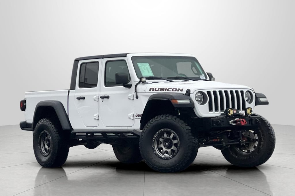 Clean CARFAX. CARFAX One-Owner. Bright White Clearcoat 2020 Jeep Gladiator Rubicon 4D Crew Cab 4WD 8-Speed Automatic 3.6L V6 24V VVT 240 Amp Alternator, 4-Wheel Disc Brakes, 4.10 Rear Axle Ratio, 700 Amp Maintenance Free Battery, 8 Speakers, 97 mph Maximum Speed Calibration, ABS brakes, Air Conditioning, All-Weather Slush Mats, Alloy wheels, AM/FM radio: SiriusXM, Apple CarPlay/Android Auto, Automatic temperature control, Auxiliary Switch Group, Auxiliary Switches, Black 3-Piece Hard Top, Brake assist, Class IV Hitch Receiver, Compass, Delay-off headlights, Driver door bin, Driver vanity mirror, Dual front impact airbags, Dual front side impact airbags, Electronic Stability Control, Freedom Panel Storage Bag, Front anti-roll bar, Front Bucket Seats, Front Center Armrest w/Storage, Front dual zone A/C, Front fog lights, Front reading lights, Fully automatic headlights, Garage door transmitter, Heated door mirrors, Heavy-Duty Engine Cooling, Illuminated entry, Integrated roll-over protection, Leather steering wheel, Low tire pressure warning, Manufacturer's Statement of Origin, No Soft Top, Occupant sensing airbag, Outside temperature display, Panic alarm, ParkView Rear Back-Up Camera, Passenger door bin, Passenger vanity mirror, Performance Suspension, Power door mirrors, Power steering, Power windows, Premium Cloth Low-Back Bucket Seats, Quick Order Package 24R, Radio data system, Radio: Uconnect 4 w/7" Display, Rear anti-roll bar, Rear reading lights, Rear Sliding Window, Rear Window Defroster, Remote keyless entry, Remote Proximity Keyless Entry, Security system, Speed control, Split folding rear seat, Steering wheel mounted audio controls, Tachometer, Telescoping steering wheel, Tilt steering wheel, Traction control, Trailer Hitch Zoom, Trailer Tow Package, Trip computer, Variably intermittent wipers, Voltmeter, Wheels: 17" x 7.5" Granite Crystal Aluminum.