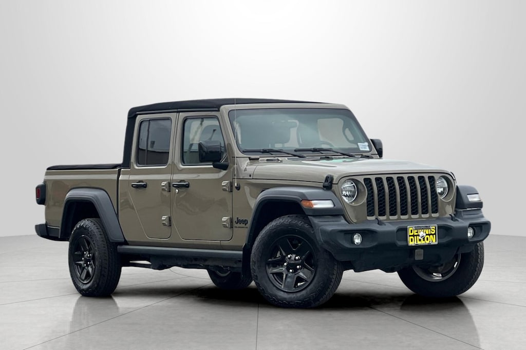 Clean CARFAX. CARFAX One-Owner. Gator Clearcoat 2020 Jeep Gladiator Sport 4D Crew Cab 4WD 8-Speed Automatic 3.6L V6 24V VVT 1-Year SiriusXM Radio Service, 110 mph Vehicle Max Speed Calibration, 220 Amp Alternator, 3.73 Rear Axle Ratio, 4-Wheel Disc Brakes, 7.0" Touch Screen Display, 8 Speakers, ABS brakes, Air Conditioning, Air Conditioning w/Auto Temperature Control, Alpine Premium Audio System, AM/FM radio, Anti-Lock 4-Wheel Disc Heavy Duty Brakes, Anti-Spin Differential Rear Axle, Apple CarPlay, Automatic Headlamps, Brake assist, Cloth Low-Back Bucket Seats, Cluster 7.0" TFT Color Display, Cold Weather Group, Compass, Convenience Group, Deep Tint Sunscreen Windows, Delay-off headlights, Driver door bin, Driver vanity mirror, Dual front impact airbags, Dual front side impact airbags, Electronic Stability Control, Engine Block Heater, For More Info, Call 800-643-2112, Front 1-Touch Down Power Windows, Front anti-roll bar, Front Bucket Seats, Front Center Armrest w/Storage, Front fog lights, Front reading lights, Google Android Auto, GPS Antenna Input, Heated Front Seats, Heated Steering Wheel, Integrated Center Stack Radio, Integrated roll-over protection, Leather Wrapped Steering Wheel, Low tire pressure warning, Normal Duty Plus Suspension, Normal Duty Suspension, Occupant sensing airbag, Outside temperature display, ParkView Rear Back-Up Camera, Passenger door bin, Passenger vanity mirror, Power Heated Mirrors, Power steering, Power Tailgate Lock, Premium Black Sunrider Soft Top, Quick Order Package 24S, Radio data system, Radio: Uconnect 3 w/5" Display, Radio: Uconnect 4 w/7" Display, Rear anti-roll bar, Rear reading lights, Remote Keyless Entry, Roll-Up Tonneau Cover, Security Alarm, SiriusXM Satellite Radio, Speed control, Speed Sensitive Power Locks, Split folding rear seat, Spray In Bedliner, Steering wheel mounted audio controls, Sun Visors w/Illuminated Vanity Mirrors, Tachometer, Technology Group, Telescoping steering wheel, Tilt steering wheel, Traction control, Trip computer, Universal Garage Door Opener, USB Host Flip, Variably intermittent wipers, Wheels: 17" x 7.5" Black Steel Styled, Wheels: 17" x 7.5" Tech Silver Aluminum.