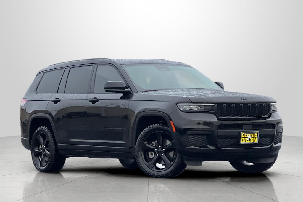 Clean CARFAX. Diamond Black Crystal Pearlcoat 2021 Jeep Grand Cherokee L Altitude 4D Sport Utility 4WD 8-Speed Automatic 3.6L V6 24V VVT 115V Auxiliary Power Outlet, 3.45 Rear Axle Ratio, 3rd Row Charge-Only USB Ports, 3rd row seats: split-bench, 4-Wheel Disc Brakes, 6 Speakers, ABS brakes, Air Conditioning, Alloy wheels, Altitude Appearance Package, AM/FM radio, Anti-whiplash front head restraints, Apple CarPlay/Android Auto, Automatic temperature control, Black Headliner, Brake assist, Bridgestone Brand Tires, Bumpers: body-color, Cloth Seats, Compass, Delay-off headlights, Delete Laredo Badge, Driver door bin, Driver vanity mirror, Dual front impact airbags, Dual front side impact airbags, Electronic Stability Control, Emergency communication system, Four wheel independent suspension, Front anti-roll bar, Front Bucket Seats, Front Center Armrest w/Storage, Front dual zone A/C, Front reading lights, Fully automatic headlights, Gloss Black Exterior Accents, Heated door mirrors, Heated Front Seats, Heated Steering Wheel, Illuminated entry, Knee airbag, Leather Trimmed Bucket Seats, Leather Wrapped Steering Wheel, Low tire pressure warning, Manual Fold Seatbacks, Molded In Color Black/Gloss Black Roof Rails, Normal Duty Suspension, Occupant sensing airbag, Outside temperature display, Overhead airbag, Overhead console, Panic alarm, ParkView Rear Back-Up Camera, Passenger door bin, Passenger vanity mirror, Power door mirrors, Power driver seat, Power Liftgate, Power steering, Power windows, Quick Order Package 22B Altitude, Radio data system, Radio: Uconnect 5 w/8.4" Display, Rain Sensitive Windshield Wipers, Rear air conditioning, Rear anti-roll bar, Rear reading lights, Rear window defroster, Rear window wiper, Reclining 3rd row seat, Remote keyless entry, Remote Start System, Roof rack: rails only, Security system, Selectable Tire Fill Alert, Speed control, Speed-Sensitive Wipers, Split folding rear seat, Spoiler, Steering wheel mounted audio controls, Tachometer, Telescoping steering wheel, Tilt steering wheel, Traction control, Trip computer, Turn signal indicator mirrors, Variably intermittent wipers, Wheels: 18" x 8.0" Fully Painted Aluminum, Wheels: 20" x 8.5" Gloss Black Painted Aluminum, Wireless Charging Pad.