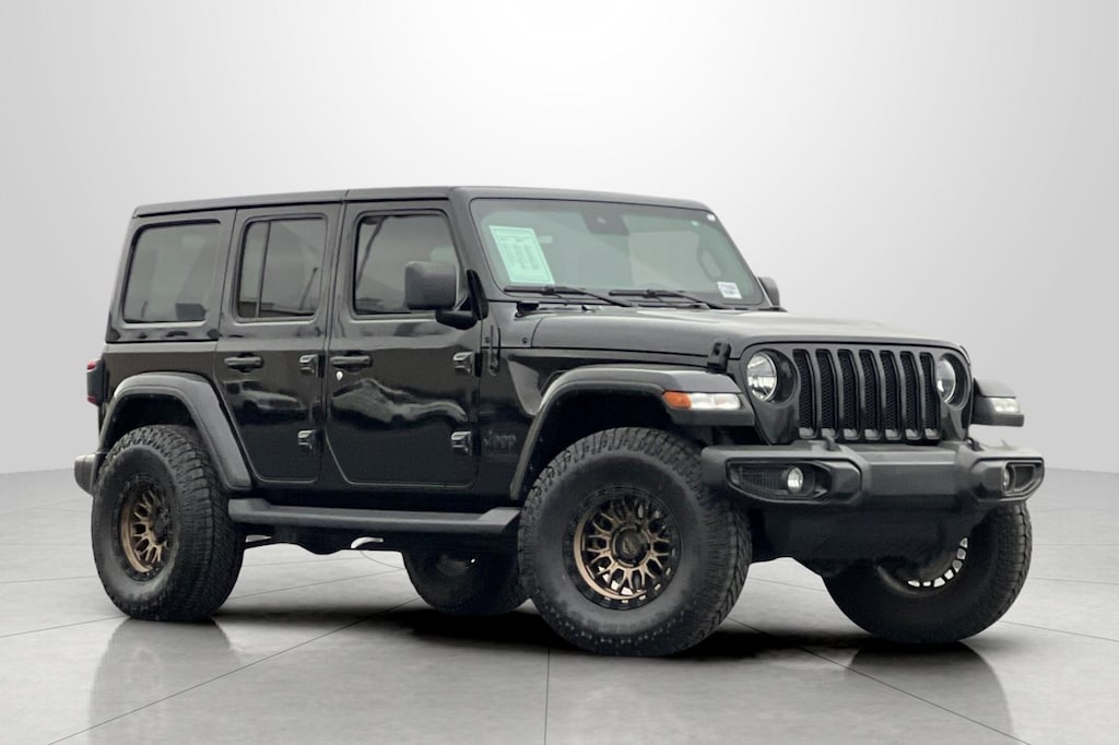 Clean CARFAX. Black Clearcoat 2021 Jeep Wrangler Unlimited Sahara Altitude 4D Sport Utility 4WD 8-Speed Automatic 3.0L V6 Turbodiesel 240 Amp Alternator, 4-Wheel Disc Brakes, 7 & 4 Pin Wiring Harness, 700 Amp Maintenance Free Battery, 8 Speakers, ABS brakes, Advanced Brake Assist, Advanced Safety Group, Air Conditioning, Alloy wheels, Altitude Package, AM/FM radio: SiriusXM, Anti-Spin Differential Rear Axle, Apple CarPlay, Apple CarPlay/Android Auto, Auto High Beam Headlamp Control, Automatic temperature control, Aux Battery, Auxiliary Switches, Black Interior Accents, Black Trail Rated Badge, Blind Spot & Cross Path Detection, Body Color 3-Piece Hard Top, Body Color Grille w/Gloss Black Rings, Brake assist, Class II Receiver Hitch, Cloth Low-Back Bucket Seats, Compass, Delay-off headlights, Driver door bin, Driver vanity mirror, Dual front impact airbags, Dual front side impact airbags, Electronic Stability Control, Front anti-roll bar, Front Bucket Seats, Front Center Armrest w/Storage, Front dual zone A/C, Front fog lights, Front License Plate Bracket, Front reading lights, Full Speed Forward Collision Warning Plus, Fully automatic headlights, Garage door transmitter, Glass Window Material, Google Android Auto, GPS Antenna Input, Gray EcoDiesel Badge, Heated door mirrors, Heavy Duty Suspension w/Gas Shocks, Illuminated entry, Integrated roll-over protection, Integrated Voice Command w/Bluetooth, Leather steering wheel, Leather Trimmed Bucket Seats, Leather Wrapped Park Brake Handle, Leather Wrapped Shift Knob, Low tire pressure warning, Manufacturer's Statement of Origin, Matte Black Jeep Badge, Mold In Color Bumper w/Gloss Black, MOPAR Hardtop Headliner, Non-Lock Fuel Cap w/o Discriminator, Occupant sensing airbag, Outside temperature display, Panic alarm, ParkSense Rear Park Assist System, ParkView Rear Back-Up Camera, Passenger door bin, Passenger vanity mirror, Power door mirrors, Power steering, Power windows, Quick Order Package 26L Altitude, Radio data system, Radio: Uconnect 4 w/7" Display, Rear anti-roll bar, Rear reading lights, Remote keyless entry, Remote Proximity Keyless Entry, Remote Start System, Safety Group, Security system, Speed control, Split folding rear seat, Steering wheel mounted audio controls, Stop-Start Dual Battery System, Tachometer, Telescoping steering wheel, Tilt steering wheel, Traction control, Trailer Tow & HD Electrical Group, Trip computer, Variably intermittent wipers, Voltmeter, Wheels: 18" x 7.5" Gloss Black Aluminum, Wheels: 18" x 7.5" Polished w/Gray Spokes, Wizard Black Instrument Panel Bezels.