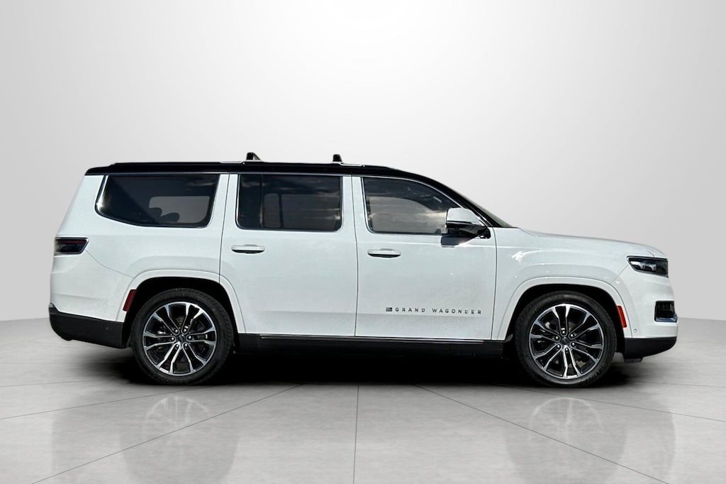 CARFAX One-Owner. Bright White Clearcoat 2022 Jeep Grand Wagoneer Series III 4D Sport Utility 4WD 8-Speed Automatic 3.0L I6 2nd Row Dual Charge-Only USB Ports, 3.92 Rear Axle Ratio, 3rd row seats: bench, 4-Wheel Disc Brakes, 40/20/40 Power Recline Tip/Slide, 8-Passenger Seating, ABS brakes, Adjustable pedals, Air Conditioning, Alloy wheels, AM/FM radio: SiriusXM with 360L, Anti-whiplash front head restraints, Audio memory, Auto High-beam Headlights, Auto-dimming door mirrors, Auto-dimming Rear-View mirror, Auto-leveling suspension, Automatic temperature control, Brake assist, Bumpers: body-color, Chrome Tow Hooks, Compass, Delay-off headlights, Driver door bin, Driver vanity mirror, Driver's Seat Mounted Armrest, Dual front impact airbags, Dual front side impact airbags, Electronic Stability Control, Flexible Seating Group, Four wheel independent suspension, Front anti-roll bar, Front Bucket Seats, Front Center Armrest w/Storage, Front dual zone A/C, Front fog lights, Front reading lights, Fully automatic headlights, Garage door transmitter, Genuine wood console insert, Genuine wood dashboard insert, Genuine wood door panel insert, HD Trailer Tow Package, Heads-Up Display, Heated door mirrors, Heated front seats, Heated rear seats, Heated steering wheel, Heavy-Duty Engine Cooling, Illuminated entry, Knee airbag, Leather steering wheel, Low tire pressure warning, Memory seat, Navigation System, Night vision lights, Normal Duty Suspension, Occupant sensing airbag, Outside temperature display, Overhead airbag, Overhead console, Panic alarm, Passenger door bin, Passenger seat mounted armrest, Passenger vanity mirror, Pedal memory, Power adjustable front head restraints, Power door mirrors, Power driver seat, Power Liftgate, Power moonroof, Power passenger seat, Power steering, Power windows, Premium Leather Trimmed Bucket Seats, Quick Order Package 28W, Radio data system, Radio: Uconnect 5 Nav w/12.0" Display, Rain sensing wipers, Rear air conditioning, Rear anti-roll bar, Rear dual zone A/C, Rear reading lights, Rear seat center armrest, Rear window defroster, Rear window wiper, Reclining 3rd row seat, Remote keyless entry, Removable Rear Tow Hook, Roof rack, Security system, Speed control, Speed-sensing steering, Speed-Sensitive Wipers, Split folding rear seat, Steering wheel memory, Steering wheel mounted audio controls, Tachometer, Telescoping steering wheel, Tilt steering wheel, Traction control, Trailer Brake Control, Trailer Hitch Line-Up Assist, Trailer Hitch Zoom, Trip computer, Turn signal indicator mirrors, Two Tone Paint Group, Variably intermittent wipers, Ventilated front seats, Ventilated rear seats, Voltmeter, Wheels: 22" x 9.0" Painted Aluminum, Wheels: 22" x 9.0" Premium 4 Aluminum.