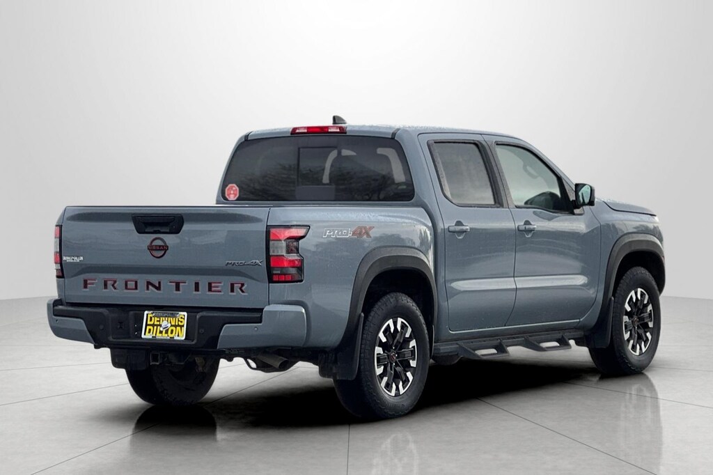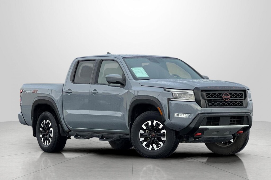 Clean CARFAX. CARFAX One-Owner. Boulder Gray Pearl 2023 Nissan Frontier PRO-4X 4D Crew Cab 4WD 9-Speed Automatic 3.8L DI DOHC 24V V6 4WD, 17" Alloy Wheels, 3.692 Axle Ratio, 4-Wheel Disc Brakes, 6 Speakers, ABS brakes, Air Conditioning, Alloy wheels, AM/FM radio: SiriusXM, Anti-whiplash front head restraints, Automatic temperature control, Brake assist, Bumpers: body-color, Delay-off headlights, Driver door bin, Driver vanity mirror, Dual front impact airbags, Dual front side impact airbags, Electronic Stability Control, Electronic Tailgate Lock, Emergency communication system: NissanConnect Services, Front anti-roll bar, Front Bucket Seats, Front Center Armrest, Front dual zone A/C, Front fog lights, Front reading lights, Front wheel independent suspension, Fully automatic headlights, Heated Steering Wheel, Illuminated entry, Illuminated Kick Plates, Intelligent Around View Monitor (I-AVM), Knee airbag, Leather Shift Knob, Low tire pressure warning, Navigation system: Nissan Navigation with Voice Recognition, Occupant sensing airbag, Off-Road Protection Package, Off-Road Style Step Rails, Overhead airbag, Overhead console, Panic alarm, Passenger door bin, Passenger vanity mirror, Power door mirrors, Power driver seat, Power steering, Power windows, PRO Convenience Package, PRO Embroidered Premium Cloth Seat Trim, PRO-4X Carpeted Floor Mats, PRO-4X Mud Flaps, Radio data system, Radio: SXM/AM/FM/AUX/USB Audio System w/6 Speakers, Rear anti-roll bar, Rear seat center armrest, Rear step bumper, Remote keyless entry, Security system, Speed control, Speed-sensing steering, Split folding rear seat, Steering wheel mounted audio controls, Tachometer, Tilt steering wheel, Tow Package: Hitch, Tow Harness, Tow Package: Hitch, Tow Harness - Delete/Credit, Traction control, Trip computer, Variably intermittent wipers, Voltmeter, Wireless Charging For Personal Devices, 4WD.