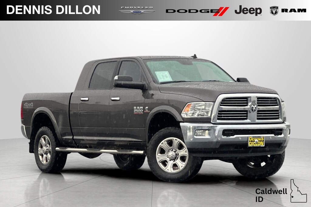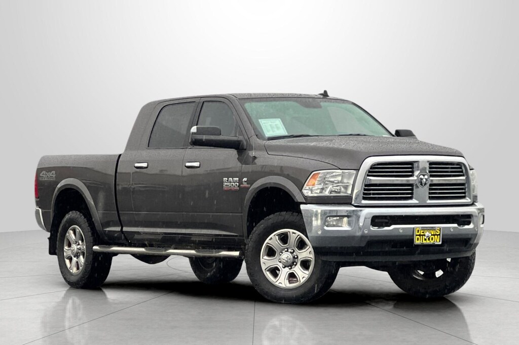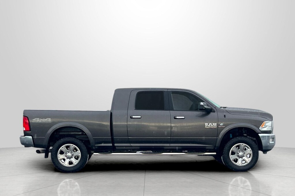 Granite Crystal Metallic Clearcoat 2017 Ram 2500 Big Horn 4D Mega Cab 4WD 6-Speed Automatic Cummins 6.7L I6 Turbodiesel 115V Auxiliary Power Outlet, 180 Amp Alternator, 4-Wheel Disc Brakes, 40/20/40 Split Bench Seat, 6 Month Trial (Registration Required), 6 Speakers, 8.4" Touchscreen Display, 9 Alpine Speakers w/Subwoofer, ABS brakes, Air Conditioning, Air Conditioning ATC w/Dual Zone Control, AM/FM radio: SiriusXM, Anti-Spin Differential Rear Axle, Auto-Dimming Exterior Mirrors, Auto-Dimming Rear-View Mirror, Big Horn Badge, Big Horn Regional Package, Black Exterior Mirrors, Black MIC Exterior Mirrors, Body Color Fender Flares, Brake assist, Bright/Bright Billets Grille, Bumpers: chrome, Center Hub, Charge Only Remote USB Port, Cloth 40/20/40 Bench Seat, Cold Weather Group, Compass, Delay-off headlights, Driver door bin, Dual front impact airbags, Dual front side impact airbags, Electroluminescent Instrument Cluster, Electronic Stability Control, Electronically Controlled Throttle, Engine Block Heater, Exterior Mirrors Courtesy Lamps, Exterior Mirrors w/Heating Element, Exterior Mirrors w/Supplemental Signals, Fog Lamps, For Details Visit DriveUconnect.com, Front anti-roll bar, Front Center Armrest w/Storage, Front Center Seat Cushion Storage, Front Performance Tuned Shock Absorbers, Front reading lights, Fully automatic headlights, Glove Box Lamp, GPS Antenna Input, Heated door mirrors, Heated Front Seats, Heated Seats & Wheel Group, Heated Steering Wheel, Hemi Badge, Illuminated entry, Integrated Voice Command w/Bluetooth, Leather Wrapped Steering Wheel, LED Bed Lighting, Locking Tailgate, Low tire pressure warning, Luxury Group, Manufacturer's Statement of Origin, Media Hub (2 USB, AUX), Nav-Capable! See Dealer for Details, Next Generation Engine Controller, Occupant sensing airbag, Off Road Package, Offroad Decal, Outside temperature display, Overhead airbag, Overhead console, Overhead Console w/Garage Door Opener, Panic alarm, ParkSense Front/Rear Park Assist System, ParkView Rear Back-Up Camera, Passenger door bin, Passenger vanity mirror, Power 10-Way Driver Seat, Power door mirrors, Power Folding Black Trailer Tow Mirrors, Power Lumbar Adjust, Power steering, Power windows, Power-Folding Mirrors, Premium Cloth 40/20/40 Bench Seat, Quick Order Package 2FZ Big Horn, Radio data system, Radio: Uconnect 3 w/5" Display, Radio: Uconnect 3C w/8.4" Display, Rear 60/40 Split Folding Seat, Rear Dome w/On/Off Switch Lamp, Rear Performance Tuned Shock Absorbers, Rear seat center armrest, Rear step bumper, Remote keyless entry, Remote Start System, SiriusXM Satellite Radio, Speed control, Split folding rear seat, Steering Wheel Mounted Audio Controls, Sun Visors w/Illuminated Vanity Mirrors, Tachometer, Tilt steering wheel, Tip Start, Traction control, Trailer Tow Mirrors, Trip computer, Uconnect Access, Underhood Lamp, Universal Garage Door Opener, Variably intermittent wipers, Vendor Painted Cargo Box Tracking, Voltmeter, Wheels: 18" x 8.0" Polished Aluminum, Wheels: 18" x 8.0" Steel Chrome Clad, Wheels: 20" x 8.0" Painted Aluminum w/Chrome Inserts, Winter Front Grille Cover.