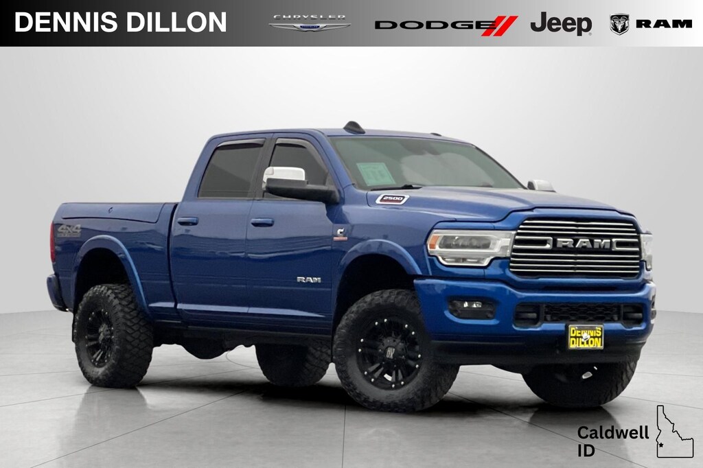 Clean CARFAX. CARFAX One-Owner. Blue Streak Pearlcoat 2019 Ram 2500 Laramie 4D Crew Cab 4WD 6-Speed Automatic Cummins 6.7L I6 Turbodiesel 1-Year SiriusXM Guardian Trial, 10 Speakers, 115V Auxiliary Rear Power Outlet, 12" Touchscreen Display, 17 Speaker High Performance Audio, 2 Way Rear Headrest Seat, 220 Amp Alternator, 2nd Row In Floor Storage Bins, 3.73 Axle Ratio, 4 Adjustable Cargo Tie-Down Hooks, 4 Way Front Headrests, 4-Wheel Disc Brakes, 5-Year SiriusXM Traffic Service, 5-Year SiriusXM Travel Link Service, ABS brakes, Active Noise Control System, Adaptive Cruise Control w/Stop, Adjustable pedals, Air Conditioning, Alloy wheels, AM/FM radio: SiriusXM, Anti-Spin Differential Rear Axle, Apple CarPlay, Apple CarPlay/Android Auto, Auto High Beam Headlamp Control, Auto-dimming Rear-View mirror, Automatic temperature control, Bed Utility Group, Black Interior Accents, Blind Spot & Cross Path Detection, Body Color Door Handles, Body Color Grille Surround, Brake assist, Bumpers: chrome, Cold Weather Group, Compass, Delay-off headlights, Deployable Bed Step, Disassociated Touchscreen Display, Driver door bin, Driver vanity mirror, Dual front impact airbags, Dual front side impact airbags, Electronic Stability Control, Electronically Controlled Throttle, Engine Block Heater, Exterior Mirrors w/Memory, Foam Bottle Insert (Door Trim Panel), For Details Visit DriveUconnect.com, Front anti-roll bar, Front Center Armrest w/Storage, Front dual zone A/C, Front fog lights, Front Performance Tuned Shock Absorbers, Front reading lights, Front Seat Back Map Pockets, Full Speed Forward Collision Warning Plus, Fully automatic headlights, Garage door transmitter, Google Android Auto, GPS Antenna Input, GPS Navigation, HD Radio, Heated door mirrors, Heated Front Seats, Heated front seats, Heated Second Row Seats, Heated Steering Wheel, Heated steering wheel, Heavy Duty Snow Plow Prep Group, Hill Descent Control, I/P Mounted Auxiliary Switches, Illuminated entry, Integrated Voice Command w/Bluetooth, Laramie Level 2 Equipment Group, Leather steering wheel, Leather Trim 40/20/40 Bench Seat, LED Bed Lighting, Low tire pressure warning, Manufacturer's Statement of Origin, Media Hub w/2 Charge Only USBs, Mirror-Mounted Aux Reverse Lamps, Occupant sensing airbag, Off Road Decal, Off Road Package, Outside temperature display, Overhead airbag, Overhead console, Painted Front Bumper, Painted Rear Bumper, Panic alarm, ParkSense Front/Rear Park Assist System, ParkView Rear Back-Up Camera, Passenger door bin, Passenger vanity mirror, Power 2-Way Driver Lumbar Adjust, Power 2-Way Passenger Lumbar Adjust, Power Adjust 8-Way Driver Seat, Power Adjust 8-Way Front Passenger Seat, Power Adjustable Convex Aux Mirrors, Power Adjustable Pedals w/Memory, Power Chrome Tow Mirrors w/Convex Spotter & Memory, Power Deployable Running Boards, Power door mirrors, Power driver seat, Power passenger seat, Power steering, Power windows, Quick Order Package 2HH Laramie, Radio data system, Radio: Uconnect 12.0 w/Navigation, Radio: Uconnect 4 w/8.4" Display, Radio: Uconnect 4C Nav w/8.4" Display, Radio/Driver Seat/Mirrors/Pedals Memory, Rain Sensitive Windshield Wipers, RamBox Cargo Management System, RamBox Utility Group, Ramcharger Wireless Charging Pad, Rear 60/40 Folding Seat, Rear anti-roll bar, Rear Backup Alarm, Rear Performance Tuned Shock Absorbers, Rear reading lights, Rear seat center armrest, Rear step bumper, Rear window defroster, Remote keyless entry, Remote Tailgate Release, Safety Group, Security system, Selectable Tire Fill Alert, Single Disc Remote CD Player, SiriusXM Satellite Radio, SiriusXM Traffic Plus, SiriusXM Travel Link, SiriusXM w/360L, Speed control, Split folding rear seat, Sport Appearance Package, Sport Decal, Spray In Bedliner, Steering wheel mounted audio controls, Tachometer, Tilt steering wheel, Tip Start, Tow Hooks, Traction control, Trip computer, Truck Bed Cargo Divider, Turn signal indicator mirrors, USB Host Flip, Variably intermittent w