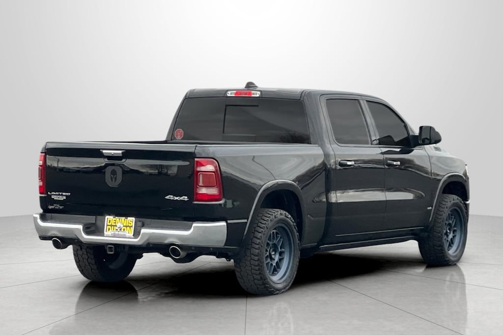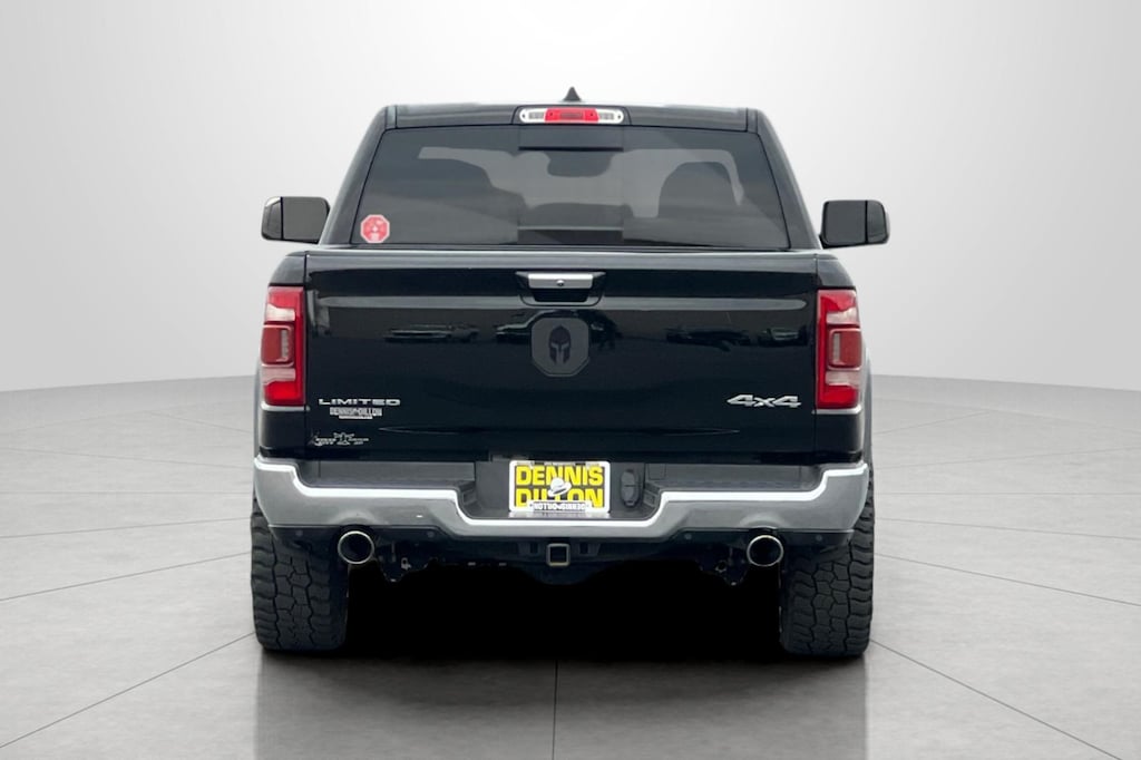 Diamond Black Crystal Pearlcoat 2020 Ram 1500 Limited 4D Crew Cab 4WD 8-Speed Automatic EcoDiesel 3.0L V6 10 Speakers, 4-Wheel Disc Brakes, 48V Belt Starter Generator, ABS brakes, Adjustable pedals, Advanced Safety Group, Air Conditioning, Alloy wheels, AM/FM radio: SiriusXM with 360L, Apple CarPlay/Android Auto, Audio memory, Auto High-beam Headlights, Auto-dimming door mirrors, Auto-dimming Rear-View mirror, Auto-leveling suspension, Automatic temperature control, Bodyside moldings, Brake assist, Bumpers: chrome, Cold Weather Group, Compass, Delay-off headlights, Driver door bin, Driver vanity mirror, Dual front impact airbags, Dual front side impact airbags, E-Locker Rear Axle, Electronic Stability Control, Emergency communication system: SiriusXM Guardian, Engine Block Heater, Front anti-roll bar, Front Bucket Seats, Front Center Armrest w/Storage, Front dual zone A/C, Front fog lights, Front reading lights, Front wheel independent suspension, Fully automatic headlights, Garage door transmitter, Genuine wood console insert, Genuine wood dashboard insert, Genuine wood door panel insert, Heated door mirrors, Heated front seats, Heated rear seats, Heated steering wheel, Illuminated entry, Leather steering wheel, Low tire pressure warning, Memory seat, Navigation System, Occupant sensing airbag, Outside temperature display, Overhead airbag, Overhead console, Panic alarm, ParkView Rear Back-Up Camera, Passenger door bin, Passenger vanity mirror, Pedal memory, Power door mirrors, Power driver seat, Power passenger seat, Power steering, Power windows, Premium Leather Trimmed Bucket Seats, Protection Group, Quick Order Package 28M Limited, Radio data system, Radio: Uconnect 12 w/Navigation, Rain sensing wipers, Rear anti-roll bar, Rear seat center armrest, Rear step bumper, Rear window defroster, Remote keyless entry, Security system, Speed control, Split folding rear seat, Steering wheel mounted audio controls, Tachometer, Telescoping steering wheel, Tilt steering wheel, Traction control, Trailer Brake Control, Trailer Tow Group, Trip computer, Turn signal indicator mirrors, Variably intermittent wipers, Ventilated front seats, Voltmeter, Wheels: 20" x 9" Polished w/Inserts.