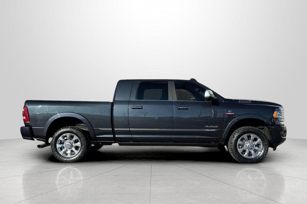 Maximum Steel Metallic Clearcoat 2021 Ram 2500 Limited 4D Mega Cab 4WD 6-Speed Automatic Cummins 6.7L I6 Turbodiesel 1-Year SiriusXM Guardian Trial, 10 Speakers, 12" Touchscreen Display, 220 Amp Alternator, 3.73 Axle Ratio, 4-Wheel Disc Brakes, 4G LTE Wi-Fi Hot Spot, 5th Wheel/Gooseneck Towing Prep Group, ABS brakes, Active Noise Control System, Adaptive Cruise Control w/Stop, Adaptive Steering System, Adjustable pedals, Air Conditioning, Air Suspension Decal, Alloy wheels, AM/FM radio: SiriusXM with 360L, Apple CarPlay, Apple CarPlay/Android Auto, Audio memory, Auto High-beam Headlights, Auto Level Rear Air Suspension, Auto-dimming Rear-View mirror, Automatic temperature control, Body Color Bumper Group, Bodyside moldings, Brake assist, Bumpers: chrome, Center Stop Lamp w/Cargo View Camera, Compass, Delay-off headlights, Digital Rearview Mirror, Disassociated Touchscreen Display, Driver door bin, Driver vanity mirror, Dual Alternators Rated At 440 Amps, Dual front impact airbags, Dual front side impact airbags, Electronic Stability Control, Electronically Controlled Throttle, Emergency communication system: SiriusXM Guardian, Front anti-roll bar, Front Bucket Seats, Front Center Armrest w/Storage, Front dual zone A/C, Front fog lights, Front License Plate Bracket, Front reading lights, Full Speed Forward Collision Warning Plus, Fully automatic headlights, Garage door transmitter, Genuine wood console insert, Genuine wood dashboard insert, Genuine wood door panel insert, Google Android Auto, GPS Antenna Input, Heated door mirrors, Heated front seats, Heated rear seats, Heated steering wheel, Heavy Duty Snow Plow Prep Group, Illuminated entry, Integrated Voice Command w/Bluetooth, Lane Keep Assist, Leather steering wheel, Limited Leather Bucket Seats, Low tire pressure warning, Memory seat, MOPAR Deployable Bed Step, Navigation System, Occupant sensing airbag, Outside temperature display, Overhead airbag, Overhead console, Painted Front Bumper, Painted Rear Bumper, Panic alarm, ParkView Rear Back-Up Camera, Passenger door bin, Passenger vanity mirror, Pedal memory, Pickup Box, Power door mirrors, Power driver seat, Power passenger seat, Power steering, Power Sunroof, Power windows, Protection Group, Quick Order Package 2HM Limited, Radio data system, Radio: Uconnect 12 w/Navigation, Rain sensing wipers, RamBox Delete, Rear anti-roll bar, Rear reading lights, Rear seat center armrest, Rear step bumper, Rear window defroster, Remote keyless entry, Safety Group, Security system, Selectable Tire Fill Alert, SiriusXM Satellite Radio, SiriusXM Traffic Plus, SiriusXM Travel Link, SiriusXM w/360L, Speed control, Split folding rear seat, Steering wheel mounted audio controls, Surround View Camera System, Tachometer, Tilt steering wheel, Tip Start, Towing Technology Group, Traction control, Trailer Tire Pressure Monitoring System, Trip computer, Turn signal indicator mirrors, Variably intermittent wipers, Ventilated front seats, Voltmeter, Wheels: 20" x 8.0" Satin Carbon w/Chrome Inserts.
