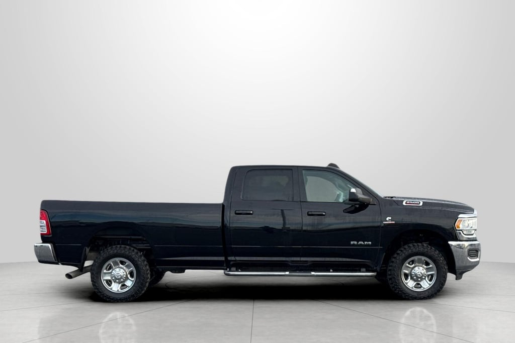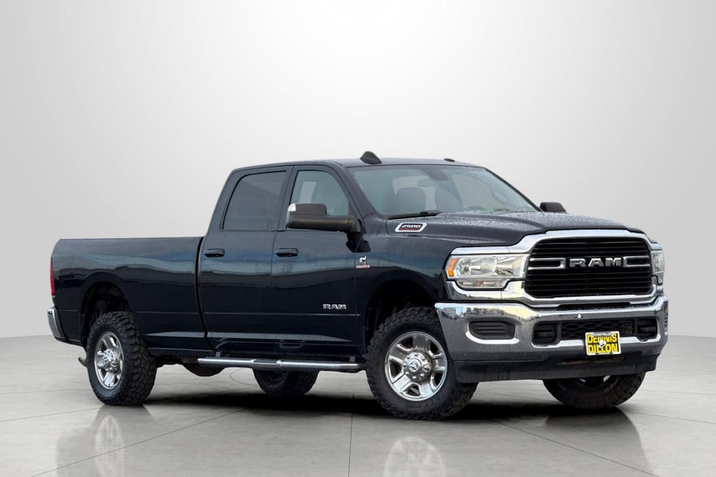Diamond Black Crystal Pearlcoat 2021 Ram 2500 Big Horn 4D Crew Cab 4WD 6-Speed Automatic Cummins 6.7L I6 Turbodiesel 2 Way Rear Headrest Seat, 3.73 Axle Ratio, 4 Way Front Headrests, 4-Wheel Disc Brakes, 40/20/40 Split Bench Seat, 6 Speakers, ABS brakes, Active Noise Control System, Air Conditioning, AM/FM radio, Brake assist, Bumpers: chrome, Center Hub, Center Stack Storage Drawer, Chrome Flat Cab-Length Side Steps, Cloth 40/20/40 Bench Seat, Compass, Delay-off headlights, Driver door bin, Dual front impact airbags, Dual front side impact airbags, Electronic Stability Control, Electronically Controlled Throttle, Front anti-roll bar, Front Center Armrest w/Storage, Front License Plate Bracket, Front reading lights, Fully automatic headlights, GPS Antenna Input, Heated door mirrors, Illuminated entry, Integrated Voice Command w/Bluetooth, Low tire pressure warning, Manual Adjust 4-Way Driver Seat, Manufacturer's Statement of Origin, Occupant sensing airbag, Outside temperature display, Overhead airbag, Overhead console, Panic alarm, ParkView Rear Back-Up Camera, Passenger door bin, Passenger vanity mirror, Power door mirrors, Power steering, Power windows, Quick Order Package 2HZ Big Horn, Radio data system, Radio: Uconnect 3 w/5" Display, Rear anti-roll bar, Rear Folding Seat, Rear seat center armrest, Rear step bumper, Remote keyless entry, Speed control, Tachometer, Tilt steering wheel, Tip Start, Tow Hooks, Traction control, Trip computer, Turn signal indicator mirrors, Variably intermittent wipers, Voltmeter, Wheels: 18" x 8.0" Steel Chrome Clad.