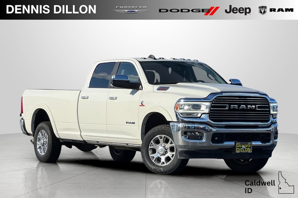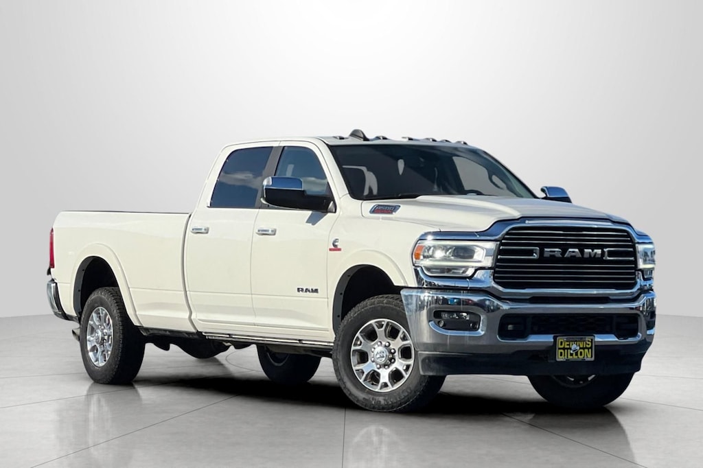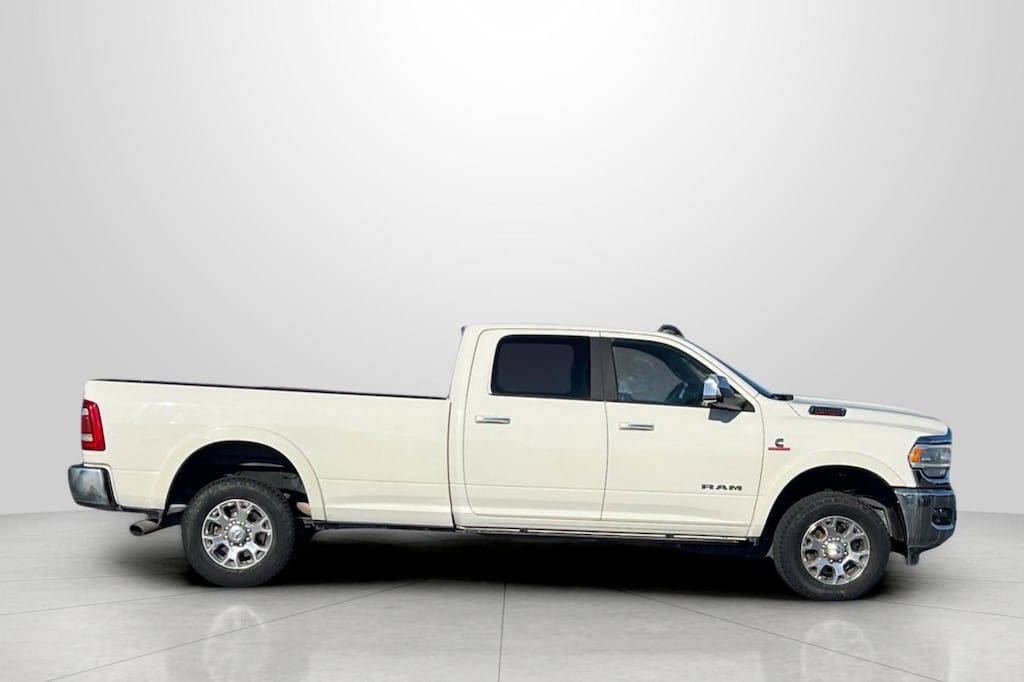 Clean CARFAX. CARFAX One-Owner. Pearl White 2022 Ram 3500 Laramie 4D Crew Cab 4WD 6-Speed Automatic Cummins 6.7L I6 Turbodiesel #1 Seat Foam Cushion, 10 Speakers, 115V Auxiliary Rear Power Outlet, 17 Speaker harman kardon Premium Sound, 2 Way Rear Headrest Seat, 220 Amp Alternator, 2nd Row In Floor Storage Bins, 3.73 Axle Ratio, 4 Way Front Headrests, 4-Wheel Disc Brakes, 4G LTE Wi-Fi Hot Spot, 8.4" Touchscreen Display, ABS brakes, Active Noise Control System, Adjustable pedals, Air Conditioning, Alexa Built-In, All R1 High Radios, All Radio Equipped Vehicles, Alloy wheels, AM/FM radio: SiriusXM, Apple CarPlay, Apple CarPlay/Android Auto, Auto High Beam Headlamp Control, Auto-dimming Rear-View mirror, Automatic temperature control, Bluetooth Handsfree Phone & Audio, Brake assist, Bumpers: chrome, Center Hub, Chrome Exterior Mirrors, Clearance Lamps, Compass, Connected Travel & Traffic Services, Connectivity - US/Canada, CTR Stop Lamp w/Cargo View Camera, Dash Pass Thru Wire Circuits, Delay-off headlights, Disassociated Touchscreen Display, Driver door bin, Driver vanity mirror, Dual front impact airbags, Dual front side impact airbags, Electronic Stability Control, Electronically Controlled Throttle, Engine Block Heater, Exterior Mirrors w/Memory, Foam Bottle Insert (Door Trim Panel), Folding Flat Load Floor Storage, For Details Visit DriveUconnect.com, For More Info, Call 800-643-2112, Front anti-roll bar, Front Bumper Sight Shields, Front Center Armrest w/Storage, Front dual zone A/C, Front fog lights, Front License Plate Bracket, Front reading lights, Front Seat Back Map Pockets, Fully automatic headlights, Garage door transmitter, Global Telematics Box Module (TBM), Google Android Auto, GPS Antenna Input, GPS Navigation, HD Radio, Heated door mirrors, Heated Front Seats, Heated front seats, Heated Second Row Seats, Heated Steering Wheel, Heated steering wheel, High Back Seats, I/P Mounted Auxiliary Switches, Illuminated entry, Integrated Center Stack Radio, Integrated Voice Command w/Bluetooth, Laramie Level B Equipment Group, Leather steering wheel, Leather Trim 40/20/40 Bench Seat, Low tire pressure warning, Mirror-Mounted Aux Reverse Lamps, Occupant sensing airbag, Off-Road Information Pages, Outside temperature display, Overhead airbag, Overhead console, Panic alarm, ParkView Rear Back-Up Camera, Passenger door bin, Passenger vanity mirror, Power 8-Way Adjustable Passenger Seat, Power Adjust 8-Way Driver Seat, Power Adjustable Convex Aux Mirrors, Power Adjustable Pedals w/Memory, Power Chrome Tow Mirrors w/Convex Spotter & Memory, Power door mirrors, Power driver seat, Power passenger seat, Power steering, Power windows, Protection Group, Quick Order Package 2HH Laramie, Radio data system, Radio: Uconnect 5 Nav w/8.4" Display, Radio: Uconnect 5 w/8.4" Display, Radio/Driver Seat/Mirrors/Pedals Memory, Rain Sensitive Windshield Wipers, Rear 60/40 Folding Seat, Rear reading lights, Rear seat center armrest, Rear step bumper, Rear window defroster, Remote keyless entry, Remote Tailgate Release, Security system, Selectable Tire Fill Alert, SiriusXM Radio Service, SiriusXM Satellite Radio, SiriusXM w/360L, Snow Chief Group, Speed control, Split folding rear seat, Steering wheel mounted audio controls, Tachometer, Tilt steering wheel, Tip Start, Traction control, Trip computer, Turn signal indicator mirrors, Variably intermittent wipers, Ventilated Front Seats, Voltmeter, Wheels: 18" x 8.0" Polished Aluminum.