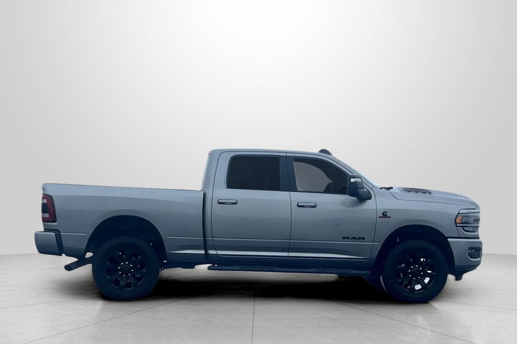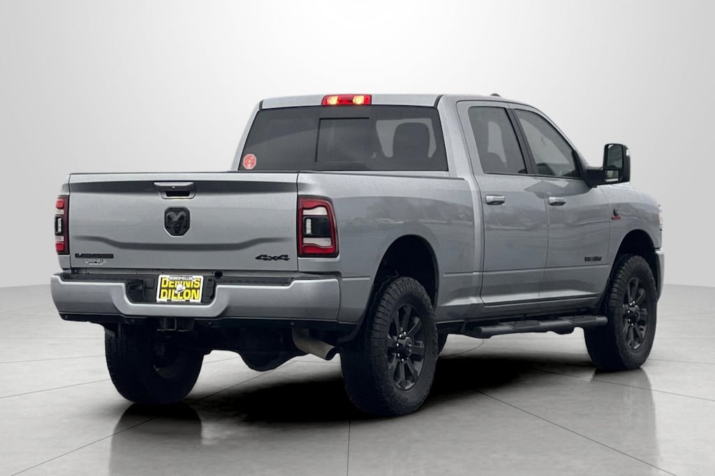 Clean CARFAX. CARFAX One-Owner. Billet Silver Metallic Clearcoat 2023 Ram 2500 Laramie 4D Crew Cab 4WD 6-Speed Automatic Cummins 6.7L I6 Turbodiesel 10 Speakers, 115V Auxiliary Rear Power Outlet, 12" Touchscreen Display, 2 Way Rear Headrest Seat, 220 Amp Alternator, 2nd Row In Floor Storage Bins, 3.73 Axle Ratio, 4 Way Front Headrests, 4-Wheel Disc Brakes, 4G LTE Wi-Fi Hot Spot, ABS brakes, Active Noise Control System, Air Conditioning, Alexa Built-In, Alloy wheels, AM/FM radio: SiriusXM with 360L, Anti-Spin Differential Rear Axle, Apple CarPlay, Apple CarPlay/Android Auto, Auto Adjust In Reverse Exterior Mirrors, Auto Dim Exterior Mirror, Auto High Beam Headlamp Control, Auto Power-Folding Mirrors, Auto-Dimming Exterior Passenger Mirror, Auto-dimming Rear-View mirror, Automatic temperature control, Black Exterior Truck Badging, Black Headlamp Bezels, Black Interior Accents, Black Ram Head Tailgate Badge, Black Tail Lamp Bezels, Black Wheel Center Hub, Blind Spot & Cross Path Detection, Body Color Grille Surround, Brake assist, Bumpers: body-color, Chrome Exterior Mirrors, Compass, Connected Travel & Traffic Services, Connectivity - US/Canada, Delay-off headlights, Disassociated Touchscreen Display, Driver door bin, Driver vanity mirror, Dual front impact airbags, Dual front side impact airbags, Electronic Stability Control, Electronically Controlled Throttle, Exterior Mirrors Courtesy Lamps, Exterior Mirrors w/Heating Element, Exterior Mirrors w/Memory, Exterior Mirrors w/Supplemental Signals, Foam Bottle Insert (Door Trim Panel), For Details, Visit DriveUconnect.com, For More Info, Call 800-643-2112, Forward & Reverse Utility Lights, Front anti-roll bar, Front Center Armrest w/Storage, Front dual zone A/C, Front LED Fog Lamps, Front License Plate Bracket, Front reading lights, Front Seat Back Map Pockets, Fully automatic headlights, Garage door transmitter, Global Telematics Box Module (TBM), Gloss Black Grille Billets/Accents, Google Android Auto, GPS Antenna Input, GPS Navigation, HD Radio, Heated door mirrors, Heated Front Seats, Heated front seats, Heated Steering Wheel, Heated steering wheel, Illuminated entry, Integrated Voice Command w/Bluetooth, Laramie Level 1 Equipment Group, Leather steering wheel, Leather Trim 40/20/40 Bench Seat, LED Reflector Headlamps, Low tire pressure warning, Manufacturer's Statement of Origin, Mirror Running Lights, Navigation System, Night Edition, Occupant sensing airbag, Off-Road Information Pages, Outside temperature display, Overhead airbag, Overhead console, Panic alarm, ParkSense Front/Rear Park Assist System, ParkView Rear Back-Up Camera, Passenger door bin, Passenger vanity mirror, Power 2-Way Driver Lumbar Adjust, Power 2-Way Passenger Lumbar Adjust, Power Adjust 8-Way Driver Seat, Power Adjust 8-Way Front Passenger Seat, Power Adjust Mirrors, Power Adjustable Convex Aux Mirrors, Power Adjustable Pedals w/Memory, Power door mirrors, Power driver seat, Power Heated Fold Telescopic Mirrors w/Memory, Power passenger seat, Power steering, Power Telescoping Mirrors, Power windows, Quick Order Package 2HH Laramie, Radio data system, Radio: Uconnect 5 Nav w/12.0" Display, Radio: Uconnect 5 Nav w/8.4" Display, Radio/Driver Seat/Mirrors/Pedals Memory, Rain Sensitive Windshield Wipers, Rear 60/40 Folding Seat, Rear anti-roll bar, Rear Power Sliding Window, Rear reading lights, Rear seat center armrest, Rear step bumper, Rear Window Defroster, Rear window defroster, Remote keyless entry, Remote Tailgate Release, Security system, Selectable Tire Fill Alert, SiriusXM Radio Service, SiriusXM w/360L, Speed control, Split folding rear seat, Sport Performance Hood, Steering wheel mounted audio controls, Tachometer, Tilt steering wheel, Tip Start, Tow Hooks, Traction control, Trailer Tow Pages, Trip computer, Turn signal indicator mirrors, Variably intermittent wipers, Vendor Painted Cargo Box, Vendor Painted Cargo Box Tracking, Voltmeter, Wheels: 18" x 8.0" Polished Aluminum, Wheels: 20" x 8.0" B