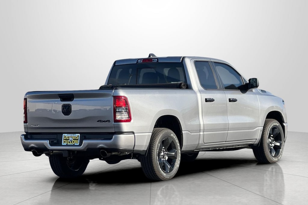 Clean CARFAX. CARFAX One-Owner. Billet Silver Metallic Clearcoat 2024 Ram 1500 Tradesman 4D Quad Cab 4WD 8-Speed Automatic HEMI 5.7L V8 Multi Displacement VVT eTorque 115V Auxiliary Power Outlet, 3 Rear Seat Head Restraints, 4 Way Front Headrests, 4-Wheel Disc Brakes, 40/20/40 Split Bench Seat, 400W Inverter, 48V Belt Starter Generator, 6 Speakers, ABS brakes, Air Conditioning, AM/FM radio, Anti-Spin Differential Rear Axle, Black Exterior Truck Badging, Black Interior Accents, Body Color Front Bumper, Body Color Rear Bumper w/Step Pads, Brake assist, Carpet Floor Covering, Class IV Receiver Hitch, Cloth 40/20/40 Bench Seat, Compass, Delay-off headlights, Driver door bin, Dual front impact airbags, Dual front side impact airbags, Electronic Stability Control, Emergency communication system: RAM Connect, For Details, Visit DriveUconnect.com, For More Info, Call 800-643-2112, Front & Rear Floor Mats, Front anti-roll bar, Front Center Armrest, Front Center Seat Cushion Storage, Front Fog Lamps, Front License Plate Bracket, Front reading lights, Front wheel independent suspension, Fully automatic headlights, Global Telematics Box Module (TBM), Grille Black Surround Black Mesh, Heated door mirrors, Heavy Duty Vinyl 40/20/40 Split Bench Seat, Illuminated entry, Low tire pressure warning, Manual Adjust 4-Way Driver Seat, Manual Adjust 4-Way Front Passenger Seat, MOPAR Front & Rear Rubber Floor Mats, Night Edition, Occupant sensing airbag, Outside temperature display, Overhead airbag, Overhead console, Panic alarm, ParkView Rear Back-Up Camera, Passenger door bin, Passenger vanity mirror, Power door mirrors, Power steering, Power windows, Protection Group, Quick Order Package 27A Tradesman, Radio data system, Radio: Uconnect 3 w/5" Display, RAM Grille Badge - Black, Rear anti-roll bar, Rear Folding Seat, Rear Power Sliding Window, Rear step bumper, Remote keyless entry, SiriusXM Radio Service, SiriusXM Satellite Radio, Speed control, Tachometer, Telescoping steering wheel, Tilt steering wheel, Tow Hooks, Traction control, Tradesman Level 1 Equipment Group, Trailer Brake Control, Variably intermittent wipers, Voltmeter, Wheels: 18" x 7.5" Steel Painted, Wheels: 20" x 9" Cast Aluminum Black.