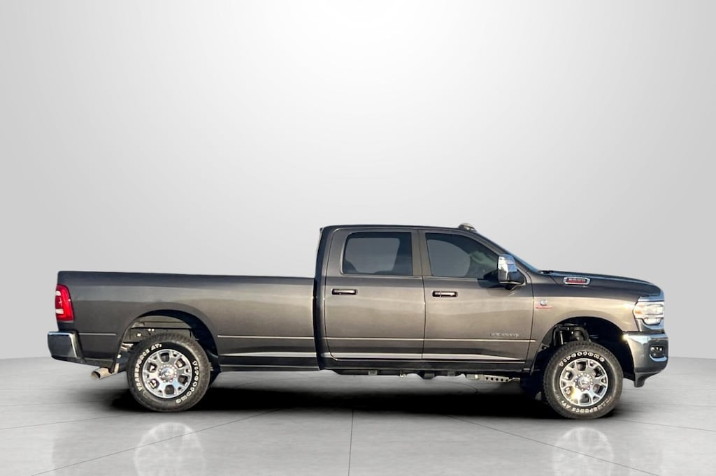 Clean CARFAX. CARFAX One-Owner. Granite Crystal Metallic Clearcoat 2024 Ram 3500 Laramie 4D Crew Cab 4WD Aisin 6-Speed Automatic 6.7L I6 10 Speakers, 115V Auxiliary Rear Power Outlet, 12" Touchscreen Display, 17 Speaker harman/kardon Premium Sound, 18" x 8" Polished Aluminum Wheels, 2 Way Rear Headrest Seat, 220 Amp Alternator, 2nd Row In Floor Storage Bins, 3.73 Axle Ratio, 4 Way Front Headrests, 4-Wheel Disc Brakes, 4G LTE Wi-Fi Hot Spot, 50 Gallon Fuel Tank, 5th Wheel/Gooseneck Towing Prep Group, 8.4" Touchscreen Display, ABS brakes, Active Noise Control System, Adaptive Cruise Control w/Stop, Adaptive Steering System, Air Conditioning, Alexa Built-In, Alloy wheels, AM/FM radio: SiriusXM with 360L, Apple CarPlay, Apple CarPlay/Android Auto, Auto Adjust In Reverse Exterior Mirrors, Auto Dimming Exterior Passenger Mirror, Auto High Beam Headlamp Control, Auto Level Rear Air Suspension, Auto Power-Folding Mirrors, Auto-Dimming Exterior Mirrors, Auto-dimming Rear-View mirror, Automatic temperature control, Bed Utility Group, Blind Spot & Cross Path Detection, Brake assist, Bright Front Bumper, Bright Rear Bumper, Bumpers: body-color, Center Hub, Chrome Bumper Package, Chrome Exterior Mirrors, Clearance Lamps, Cold Weather Group, Compass, Connected Travel & Traffic Services, Connectivity - US/Canada, CTR Stop Lamp w/Cargo View Camera, Delay-off headlights, Disassociated Touchscreen Display, Driver door bin, Driver vanity mirror, Dual front impact airbags, Dual front side impact airbags, Electronic Stability Control, Electronically Controlled Throttle, Engine Block Heater, Exterior Mirrors Courtesy Lamps, Exterior Mirrors w/Heating Element, Exterior Mirrors w/Memory, Exterior Mirrors w/Supplemental Signals, Foam Bottle Insert (Door Trim Panel), Folding Flat Load Floor Storage, For Details Visit DriveUconnect.com, For More Info, Call 800-643-2112, Forward & Reverse Utility Lights, Front anti-roll bar, Front Center Armrest w/Storage, Front dual zone A/C, Front LED Fog Lamps, Front License Plate Bracket, Front reading lights, Front Seat Back Map Pockets, Full Speed Forward Collision Warning Plus, Fully automatic headlights, Garage door transmitter, Global Telematics Box Module (TBM), Google Android Auto, GPS Antenna Input, GPS Navigation, HD Radio, Heated door mirrors, Heated Front Seats, Heated front seats, Heated Second Row Seats, Heated Steering Wheel, Heated steering wheel, High Back Seats, Illuminated entry, Integrated Center Stack Radio, Integrated Voice Command w/Bluetooth, Lane Keep Assist, Laramie Level B Equipment Group, Leather steering wheel, Leather Trim 40/20/40 Bench Seat, LED Bed Lighting, LED Reflector Headlamps, LED Tail Lamps, Low tire pressure warning, Manufacturer's Statement of Origin, Mirror Running Lights, MOPAR Deployable Bed Step, MOPAR Front & Rear Rubber Floor Mats, MOPAR Spray In Bedliner, MOPAR Winter Front Grille Cover, Navigation System, Occupant sensing airbag, Off-Road Information Pages, Outside temperature display, Overhead airbag, Overhead console, Panic alarm, ParkSense Front/Rear Park Assist System, ParkView Rear Back-Up Camera, Passenger door bin, Passenger vanity mirror, Power 8-Way Adjustable Passenger Seat, Power Adjust 8-Way Driver Seat, Power Adjust Mirrors, Power Adjustable Pedals w/Memory, Power door mirrors, Power driver seat, Power Heat Fold Memory Telescopic Mirrors, Power passenger seat, Power steering, Power Telescoping Mirrors, Power windows, Power-Adjustable Convex Aux Mirrors, Protection Group, Quick Order Package 21H Laramie, Radio data system, Radio: Uconnect 5 Nav w/12.0" Display, Radio: Uconnect 5 Nav w/8.4" Display, Rain Sensitive Windshield Wipers, Rear 60/40 Folding Seat, Rear Power Sliding Window, Rear reading lights, Rear seat center armrest, Rear step bumper, Rear Window Defroster, Remote keyless entry, Remote Tailgate Release, Safety Group, Security system, Selectable Tire Fill Alert, SiriusXM Radio Service, SiriusXM w/360L, Speed control, Split folding rear seat, Stee