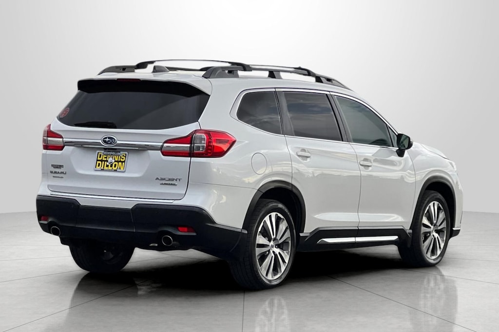 Clean CARFAX. Crystal White Pearl 2019 Subaru Ascent Limited 4D Sport Utility AWD Lineartronic CVT 2.4L DOHC 20" Alloy Wheels, 3rd row seats: bench, 4-Wheel Disc Brakes, 6 Speakers, ABS brakes, Aero Crossbar Set, Air Conditioning, All-Weather Floor Liners, Alloy wheels, AM/FM radio: SiriusXM, Auto High-beam Headlights, Auto-Dimming Exterior Mirror w/Approach Light, Auto-dimming Rear-View mirror, Automatic temperature control, Axle Ratio: 4.44, Brake assist, Bumpers: body-color, Cargo Tray, CD player, Compass, Delay-off headlights, Driver door bin, Driver vanity mirror, Dual front impact airbags, Dual front side impact airbags, Electronic Stability Control, Emergency communication system: STARLINK Safety and Security, Exterior Parking Camera Rear, Footwell Illumination Kit, Four wheel independent suspension, Front anti-roll bar, Front Bucket Seats, Front Center Armrest, Front dual zone A/C, Front fog lights, Front reading lights, Fully automatic headlights, Garage door transmitter: HomeLink, Heated door mirrors, Heated Front Bucket Seats, Heated front seats, Heated rear seats, Heated steering wheel, Illuminated entry, Knee airbag, Low tire pressure warning, Map & Reading Lights LED Upgrade - 6 Bulb Kit, Memory seat, Occupant sensing airbag, Outside temperature display, Overhead airbag, Overhead console, Panic alarm, Passenger door bin, Passenger vanity mirror, Perforated Leather-Trimmed Upholstery, Popular Package #2A, Power door mirrors, Power driver seat, Power Liftgate, Power passenger seat, Power steering, Power windows, Radio data system, Radio: Subaru STARLINK 8.0" Multimedia Plus System, Rear air conditioning, Rear anti-roll bar, Rear Bumper Cover, Rear reading lights, Rear window defroster, Rear window wiper, Remote keyless entry, Rockford Fosgate Audio Upgrade, Roof rack: rails only, Security system, Side Sill Plate, Speed control, Splash Guards, Split folding rear seat, Spoiler, Standard Model, STARLINK/Apple CarPlay/Android Auto, Steering wheel mounted audio controls, Tachometer, Telescoping steering wheel, Tilt steering wheel, Traction control, Trip computer, Variably intermittent wipers.