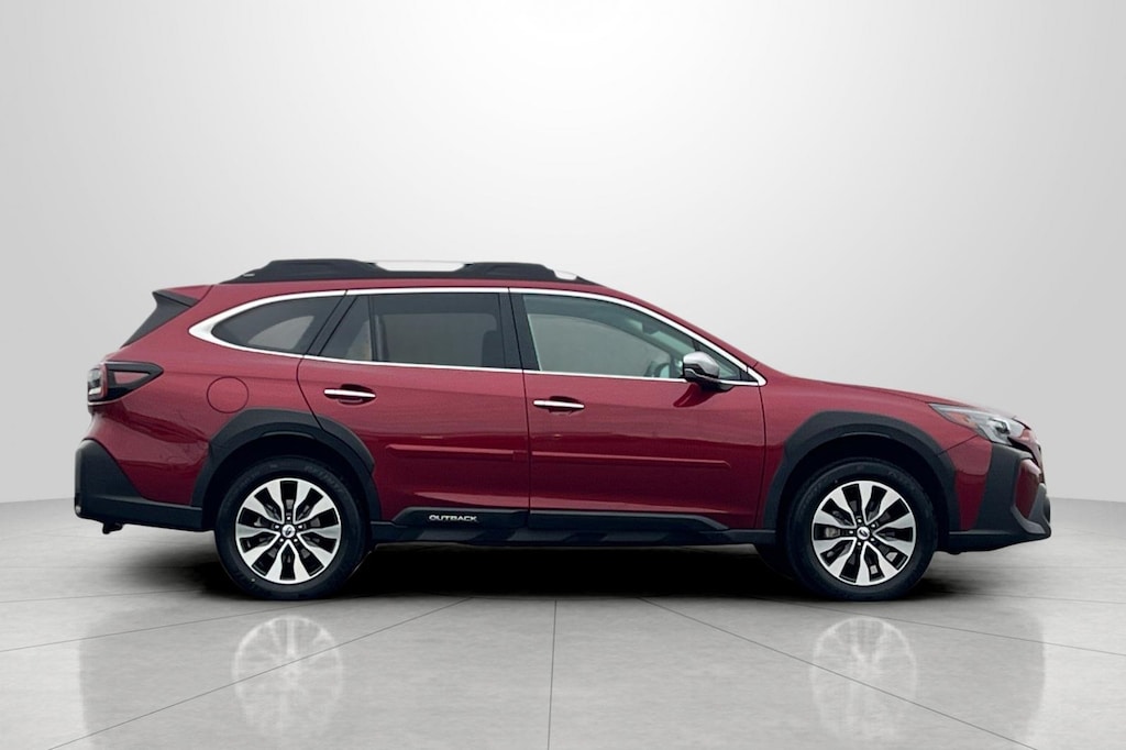 Clean CARFAX. Crimson Red Pearl 2023 Subaru Outback Touring 4D Sport Utility AWD CVT Lineartronic 2.5L 4-Cylinder DOHC 16V 12 Speakers, 3.90 Axle Ratio, 4-Wheel Disc Brakes, ABS brakes, Air Conditioning, Alloy wheels, AM/FM radio: SiriusXM, Auto High-beam Headlights, Auto-dimming Rear-View mirror, Automatic temperature control, Brake assist, Bumpers: body-color, Compass, Crimson Red Pearl Body Side Molding, Driver door bin, Driver vanity mirror, Dual front impact airbags, Dual front side impact airbags, Electronic Stability Control, Emergency communication system: STARLINK Safety Plus (3-year free trial), Exterior Parking Camera Rear, Four wheel independent suspension, Front anti-roll bar, Front Bucket Seats, Front Center Armrest w/Storage, Front dual zone A/C, Front fog lights, Front reading lights, Fully automatic headlights, Garage door transmitter: HomeLink, harman/kardon® Speakers, Heated & Ventilated Front Bucket Seats, Heated door mirrors, Heated front seats, Heated rear seats, Heated steering wheel, HVAC memory, Illuminated entry, Knee airbag, Leather Shift Knob, Leather steering wheel, Low tire pressure warning, Memory seat, Navigation System, Occupant sensing airbag, Outside temperature display, Overhead airbag, Overhead console, Panic alarm, Passenger door bin, Passenger vanity mirror, Perforated Nappa Leather-Trimmed Upholstery, Power door mirrors, Power driver seat, Power Liftgate, Power moonroof, Power passenger seat, Power steering, Power windows, Radio: Subaru STARLINK 11.6" Multimedia Nav System, Rear anti-roll bar, Rear seat center armrest, Rear window defroster, Rear window wiper, Remote CD player, Remote keyless entry, Roof rack, Security system, Speed control, Speed-sensing steering, Split folding rear seat, Spoiler, Standard Model, Steering wheel mounted audio controls, Steering Wheel Paddle Shift Control Switches, Tachometer, Telescoping steering wheel, Tilt steering wheel, Traction control, Trip computer, Turn signal indicator mirrors, Variably intermittent wipers, Ventilated front seats, Wheels: 18" x 7J Black Aluminum Alloy, Windshield Sunshade.
