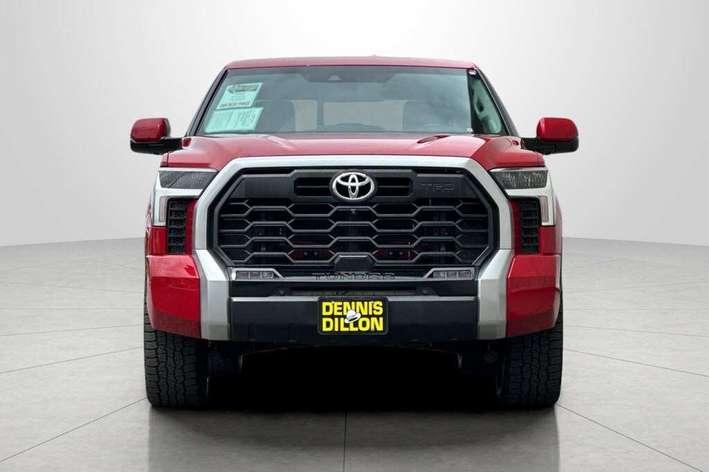 Supersonic Red 2022 Toyota Tundra Limited 4D Double Cab 4WD 10-Speed Automatic 3.4L V6 4WD, Black w/Fabric Seat Trim or SofTex Seat Trim, 20" Alloy Wheels, 3.31 Axle Ratio, 4-Wheel Disc Brakes, 6 Speakers, 8-Way Pwr Adjustable Heated/Ventilated Front Seats, ABS brakes, Air Conditioning, Alloy wheels, AM/FM radio: SiriusXM, Apple CarPlay/Android Auto, Auto High-beam Headlights, Auto-dimming door mirrors, Auto-dimming Rear-View mirror, Automatic temperature control, Brake assist, Bumpers: body-color, Delay-off headlights, Driver door bin, Driver vanity mirror, Dual front impact airbags, Dual front side impact airbags, Electronic Stability Control, Emergency communication system: Safety Connect with 1-year trial, Exterior Parking Camera Rear, Front anti-roll bar, Front Bucket Seats, Front Center Armrest, Front dual zone A/C, Front fog lights, Front reading lights, Front wheel independent suspension, Fully automatic headlights, Garage door transmitter: HomeLink, Heated door mirrors, Heated front seats, Illuminated entry, Knee airbag, Leather Shift Knob, Low tire pressure warning, Memory seat, Navigation System, Occupant sensing airbag, Outside temperature display, Overhead airbag, Overhead console, Panic alarm, Passenger door bin, Passenger vanity mirror, Power door mirrors, Power driver seat, Power passenger seat, Power steering, Power windows, Radio data system, Radio: Audio Multimedia System, Rear reading lights, Rear seat center armrest, Rear step bumper, Rear window defroster, Remote keyless entry, Safety Connect, Security system, SofTex Seat Trim, Speed control, Speed-sensing steering, Split folding rear seat, Steering wheel mounted audio controls, Tachometer, Telescoping steering wheel, Tilt steering wheel, Traction control, Trip computer, Turn signal indicator mirrors, Variably intermittent wipers, Ventilated front seats, Voltmeter, 4WD, Black w/Fabric Seat Trim or SofTex Seat Trim.