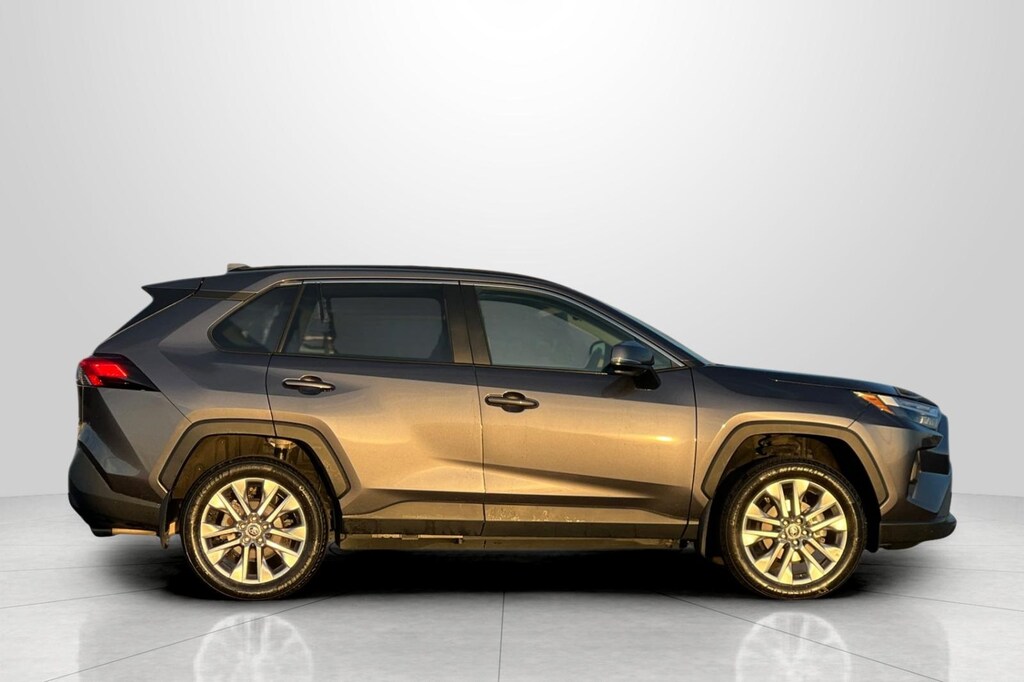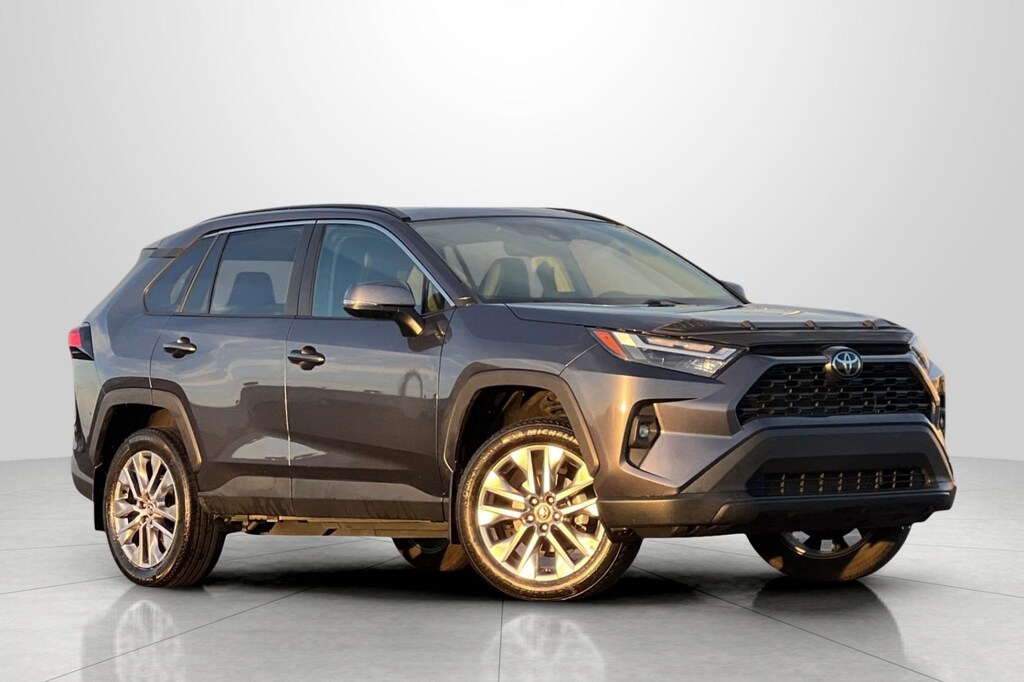 CARFAX One-Owner. Magnetic Gray Metallic 2023 Toyota RAV4 XLE Premium 4D Sport Utility AWD 8-Speed Automatic 2.5L 4-Cylinder DOHC Dual VVT-i AWD, Black Artificial Leather, 3 Spoke Leather Steering Wheel, 4-Wheel Disc Brakes, 6 Speakers, ABS brakes, Air Conditioning, Alloy wheels, AM/FM radio: SiriusXM, Auto High-beam Headlights, Automatic temperature control, Axle Ratio: 3.177, Brake assist, Bumpers: body-color, Delay-off headlights, Driver door bin, Driver vanity mirror, Dual front impact airbags, Dual front side impact airbags, Electronic Stability Control, Emergency communication system: Safety Connect (10-year trial), Exterior Parking Camera Rear, Four wheel independent suspension, Front anti-roll bar, Front Bucket Seats, Front Center Armrest, Front Door Smart Key System w/Push Button Start, Front dual zone A/C, Front reading lights, Fully automatic headlights, Heated door mirrors, Illuminated entry, Knee airbag, Leather Shift Knob, Low tire pressure warning, Occupant sensing airbag, Outside temperature display, Overhead airbag, Overhead console, Panic alarm, Passenger door bin, Passenger vanity mirror, Power door mirrors, Power driver seat, Power Liftgate, Power moonroof, Power steering, Power windows, Radio data system, Radio: AM/FM/XM Audio System, Rear anti-roll bar, Rear seat center armrest, Rear window defroster, Rear window wiper, Remote keyless entry, SofTex Seat Trim, Speed control, Speed-sensing steering, Split folding rear seat, Spoiler, Steering wheel mounted audio controls, Tachometer, Telescoping steering wheel, Tilt steering wheel, Traction control, Trip computer, Turn signal indicator mirrors, Variably intermittent wipers, Wheels: 19" Multi-Spoke Super Chrome Alloy, AWD, Black Artificial Leather.