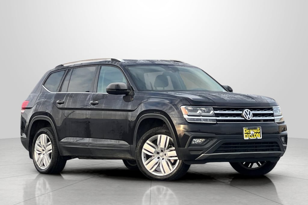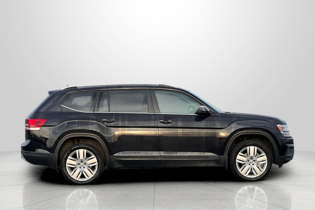 CARFAX One-Owner. Black 2019 Volkswagen Atlas 3.6L V6 SE w/Technology 4D Sport Utility AWD 8-Speed Automatic with Tiptronic 3.6L VR6 18" 5-Spoke Wheels, 3.60 Axle Ratio, 3rd row seats: split-bench, 4-Wheel Disc Brakes, 8 Speakers, ABS brakes, Active Blind Spot Monitor, Air Conditioning, Alloy wheels, AM/FM radio: SiriusXM, Auto-dimming Rear-View mirror, Automatic temperature control, Brake assist, Bumpers: body-color, Compass, Delay-off headlights, Driver door bin, Driver vanity mirror, Dual front impact airbags, Dual front side impact airbags, Electronic Stability Control, Emergency communication system: VW Car-Net services (capabilities require enrollment or subscription), Exterior Parking Camera Rear, Forward collision: FCW w/Autonomous Emergency Braking mitigation, Four wheel independent suspension, Front anti-roll bar, Front Bucket Seats, Front Center Armrest, Front dual zone A/C, Front fog lights, Front reading lights, Heated Comfort Front Bucket Seats, Heated door mirrors, Heated front seats, Illuminated entry, Low tire pressure warning, Occupant sensing airbag, Outside temperature display, Overhead airbag, Overhead console, Panic alarm, Passenger door bin, Passenger vanity mirror, Power door mirrors, Power driver seat, Power Liftgate, Power steering, Power windows, Radio data system, Radio: Composition Media 8.0" Touchscreen, Rain sensing wipers, Rear air conditioning, Rear anti-roll bar, Rear reading lights, Rear seat center armrest, Rear window defroster, Rear window wiper, Remote CD player, Remote keyless entry, Roof rack: rails only, Security system, Speed control, Speed-sensing steering, Split folding rear seat, Spoiler, Standard Suspension, Steering wheel mounted audio controls, Tachometer, Telescoping steering wheel, Tilt steering wheel, Traction control, Trip computer, Turn signal indicator mirrors, V-Tex Leatherette Seating Surfaces, Variably intermittent wipers.